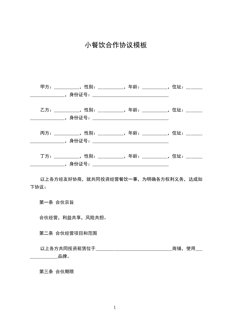 合伙人(甲方):______________合伙人(乙方):______________