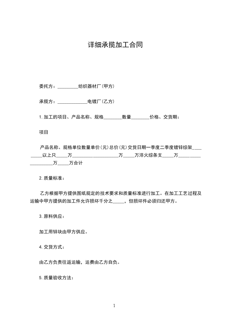 1.加工的项目、产品名称、规格________数量________价格、交货期: