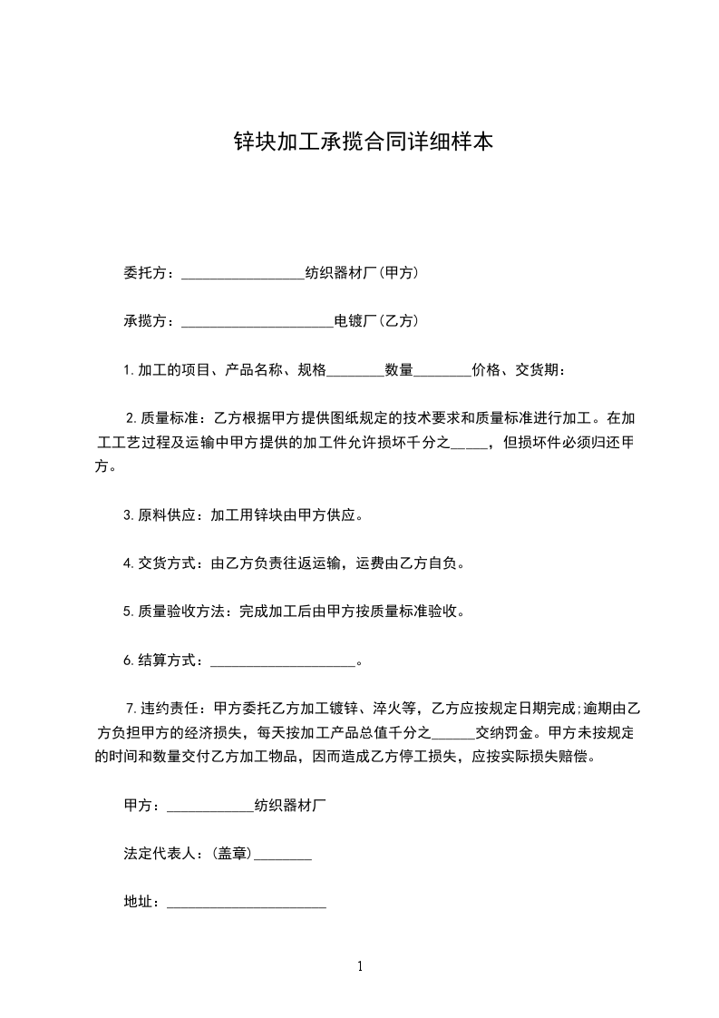 1、由甲方提供相应产品的原材料至乙方指定加工场所。乙方按产品图纸规定要求进行加工,其产品质量必须符合技术文件规定要求。