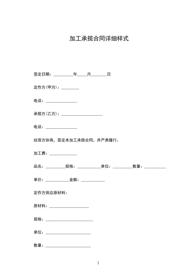 自甲方提供原材料之后起,乙方在_____天内全部按数完成该批产品加工合同,如甲已双方各自遇到不可抗拒的事件而影响到材料提供及加工阻力时,必须提前通知对方,协商解决。