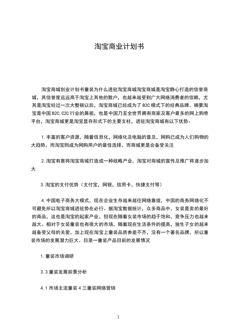 4.中国电子商务大模式,现在企业生存越来越往网络靠拢,中国的商务网络化不可避免所以淘宝商城进驻势在必行。据淘宝数据统计,众多商品中,女装是卖的最好的商品,这也是淘宝的起家产业,但现在随着女装市场的趋于饱和,竞争压力也越来越大。相对于女装童装也有很大的市场,随着现在生活条件的提高,独生子女的越来越备受父母的关爱,加上现在淘宝上童装品质参差不齐,没有一个著名品牌,所以童装市场的发展潜力巨大。目录一童装产品目前的发展情况