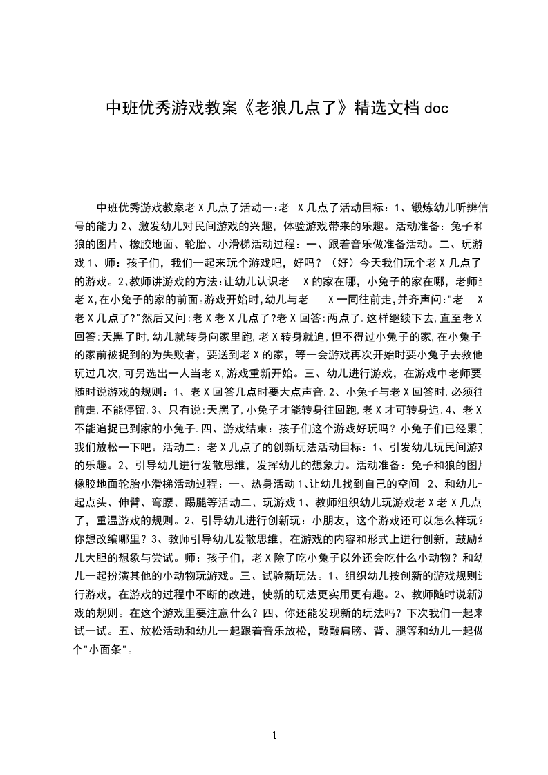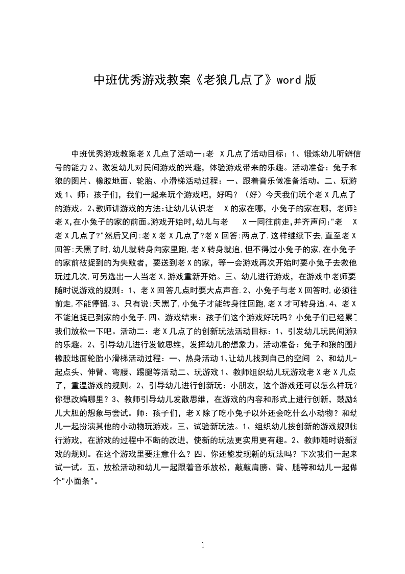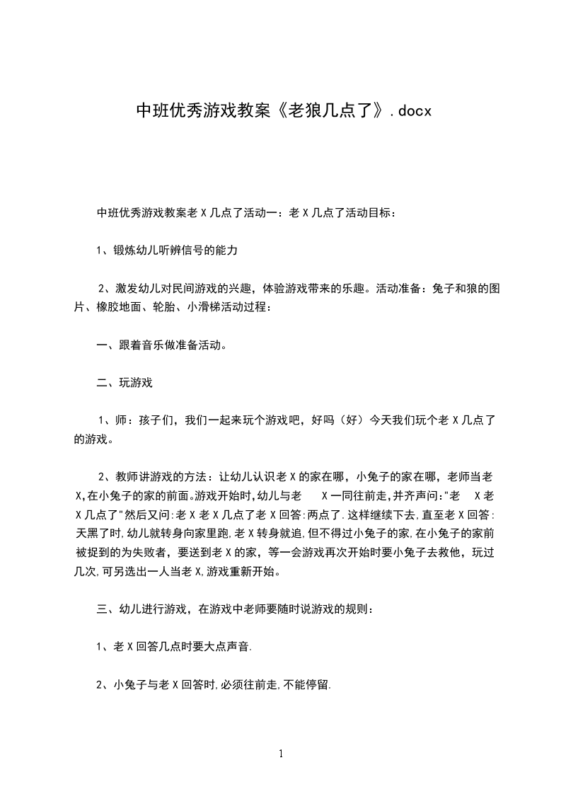 中班优秀游戏教案老X几点了活动一:老X几点了活动目标: