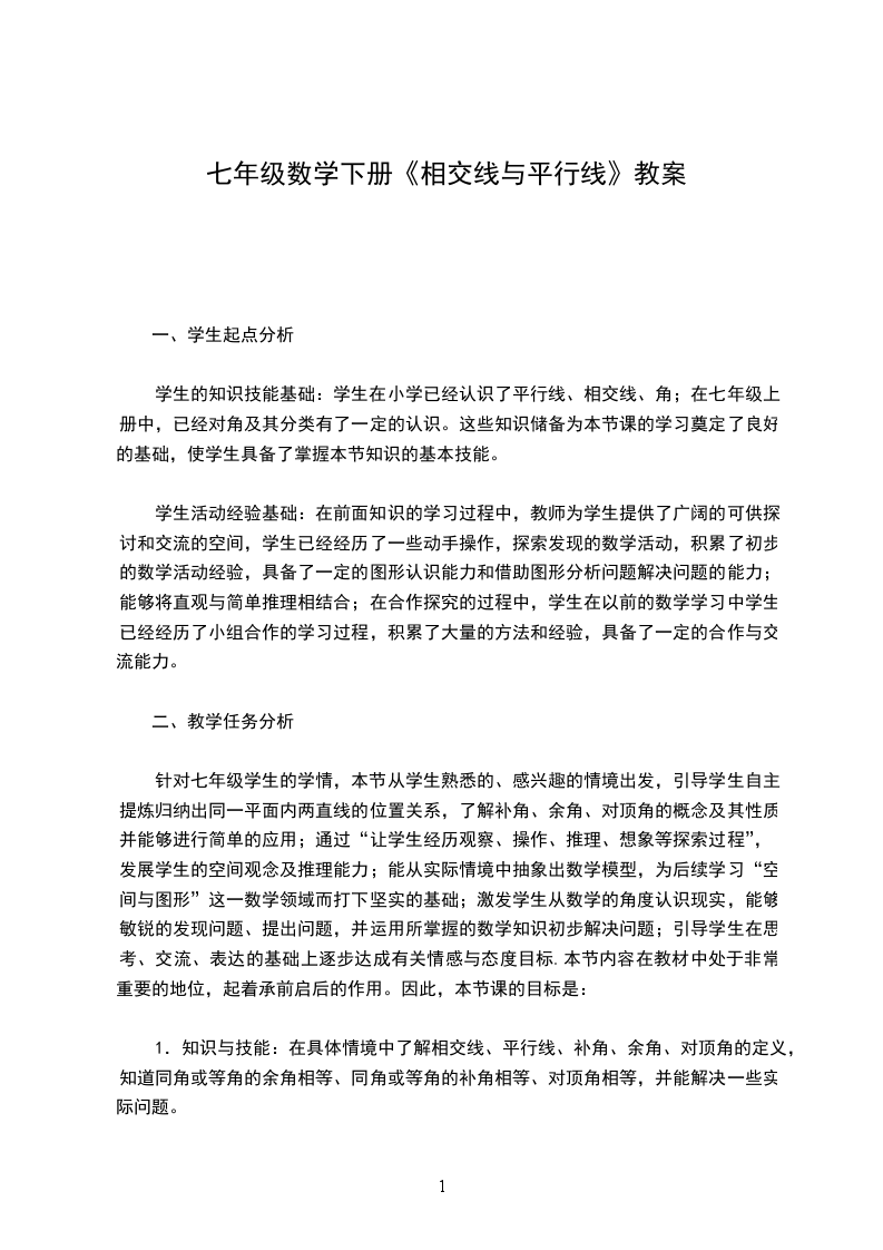3、会画直线的平行线。学习重点:同一平面内两直线的位置关系。学习难点:同一平面内两直线的位置关系。学习过程:复习: