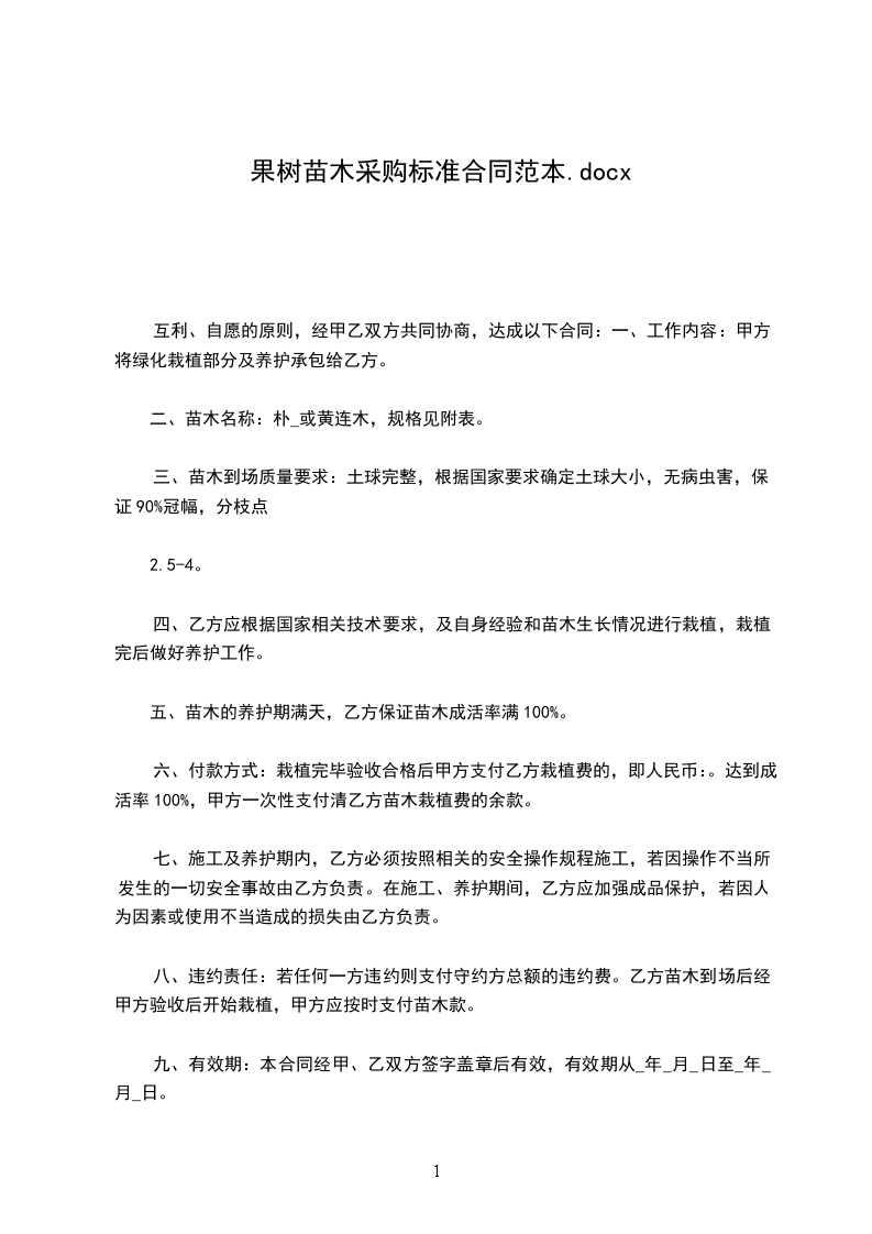 五、苗木的养护期满天,乙方保证苗木成活率满100%。