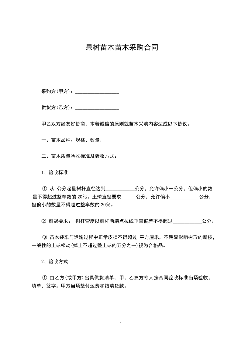 八、违约责任:若任何一方违约则支付守约方总额的违约费。乙方苗木到场后经甲方验收后开始栽植,甲方应按时支付苗木款。