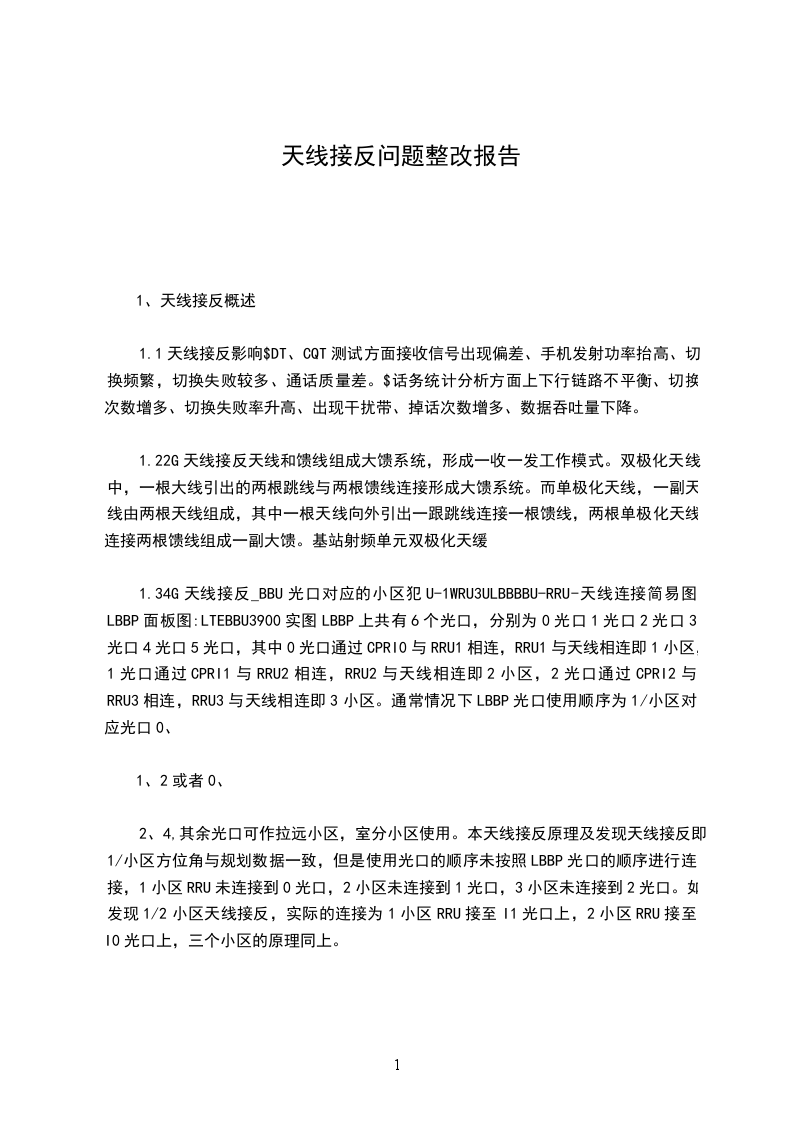 1.1天线接反影响$DT、CQT测试方面接收信号出现偏差、手机发射功率抬高、切换频繁,切换失败较多、通话质量差。$话务统计分析方面上下行链路不平衡、切换次数增多、切换失败率升高、出现干扰带、掉话次数增多、数据吞吐量下降。