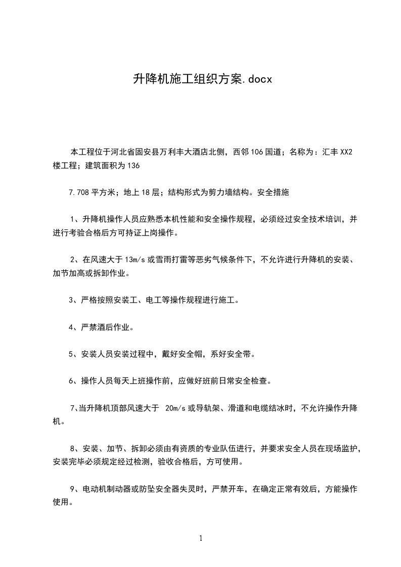 2、在风速大于13m/s或雪雨打雷等恶劣气候条件下,不允许进行升降机的安装、加节加高或拆卸作业。