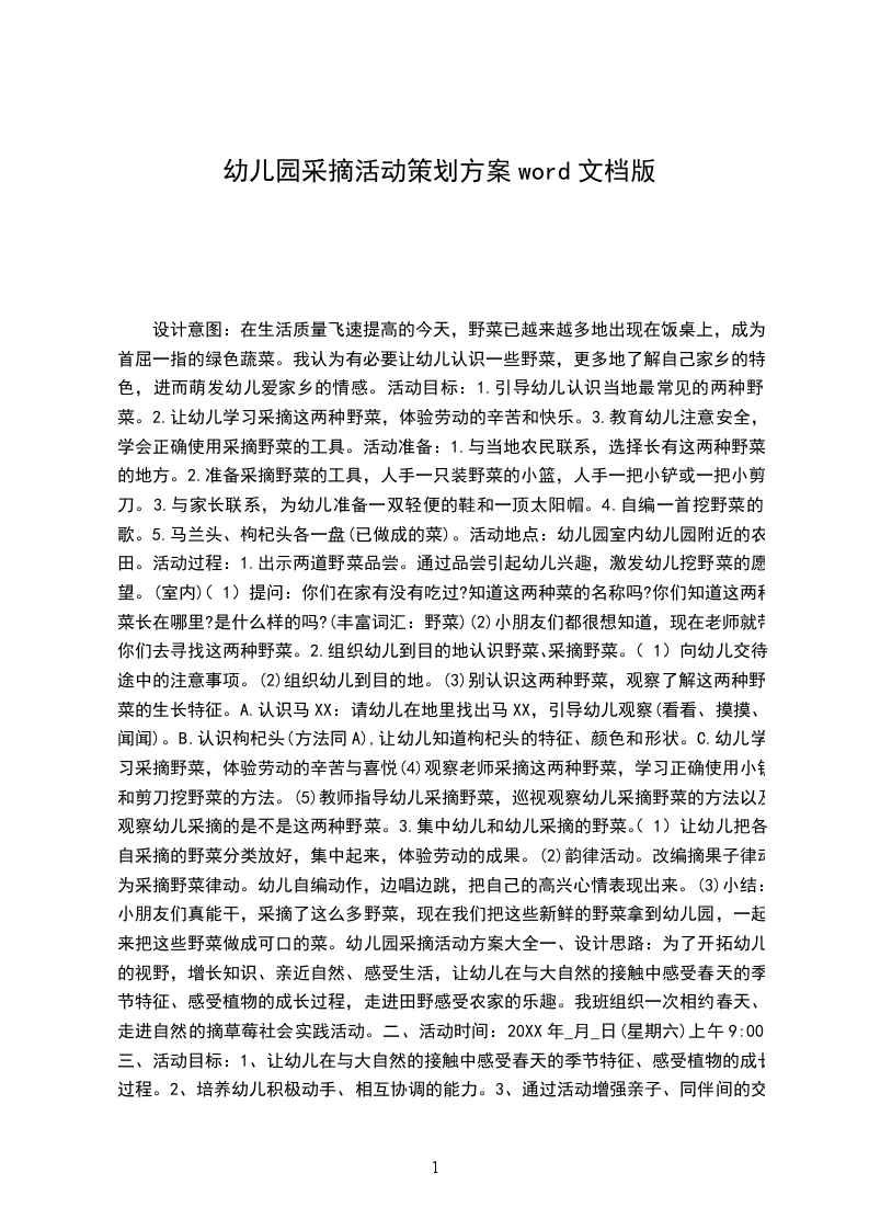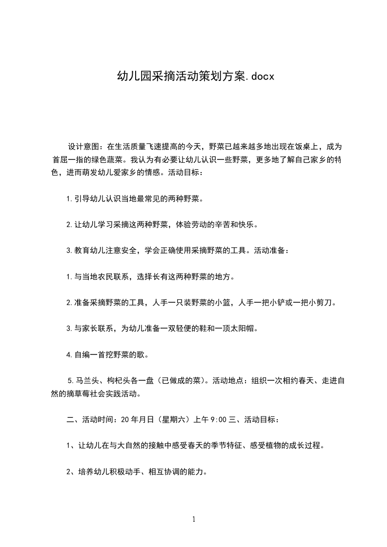 3.教育幼儿注意安全,学会正确使用采摘野菜的工具。活动准备: