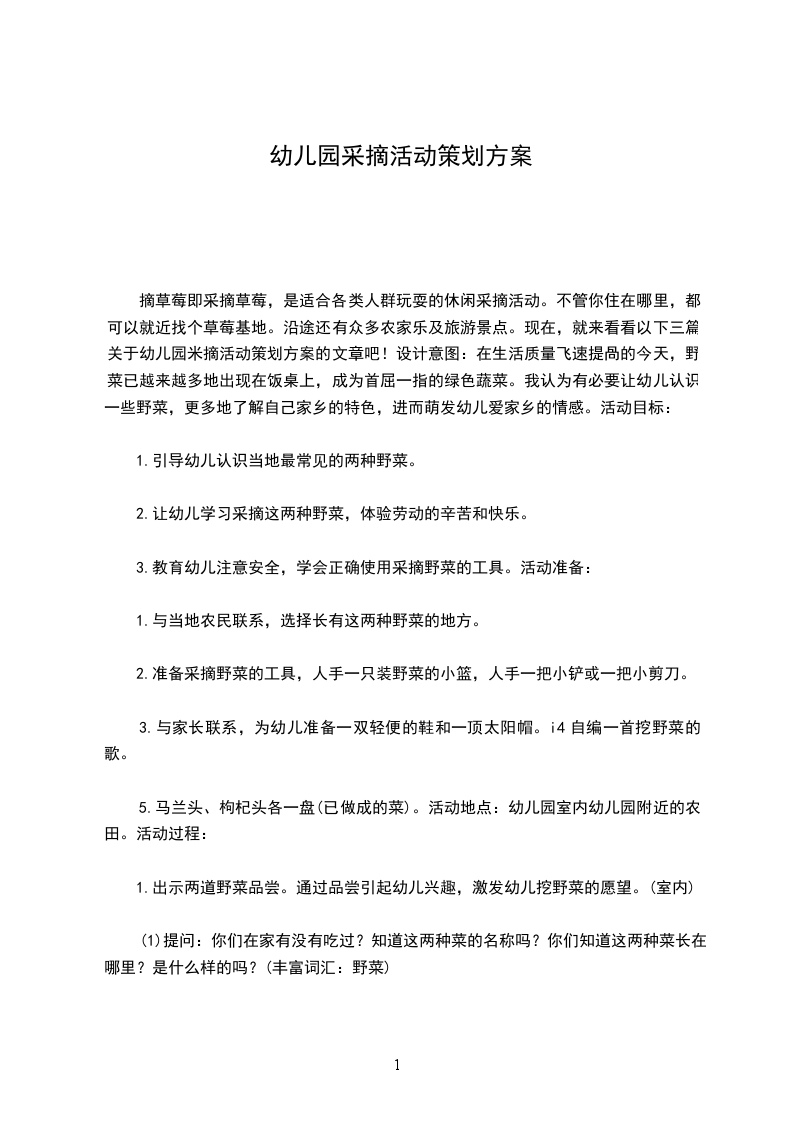 (三)9:50摘草莓活动开始(家长向幼儿介绍草莓的知识,指导幼儿采摘熟透的草莓。)