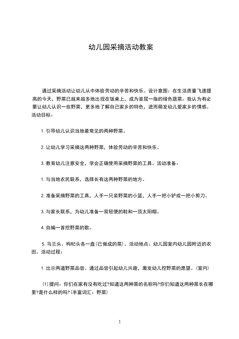 2.让幼儿学习采摘这两种野菜,体验劳动的辛苦和快乐。