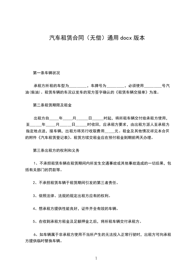 同时限:乙方无偿将该车辆借给甲方使用五年,时限自_年_月_日至_年_月_日。