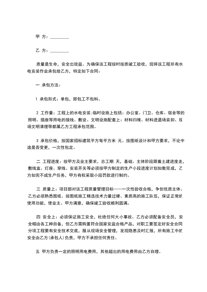 3、做好乙方开工现场准备工作,清除影响施工的障碍物,安排好乙方施工所需水、电,并承担相关费用。