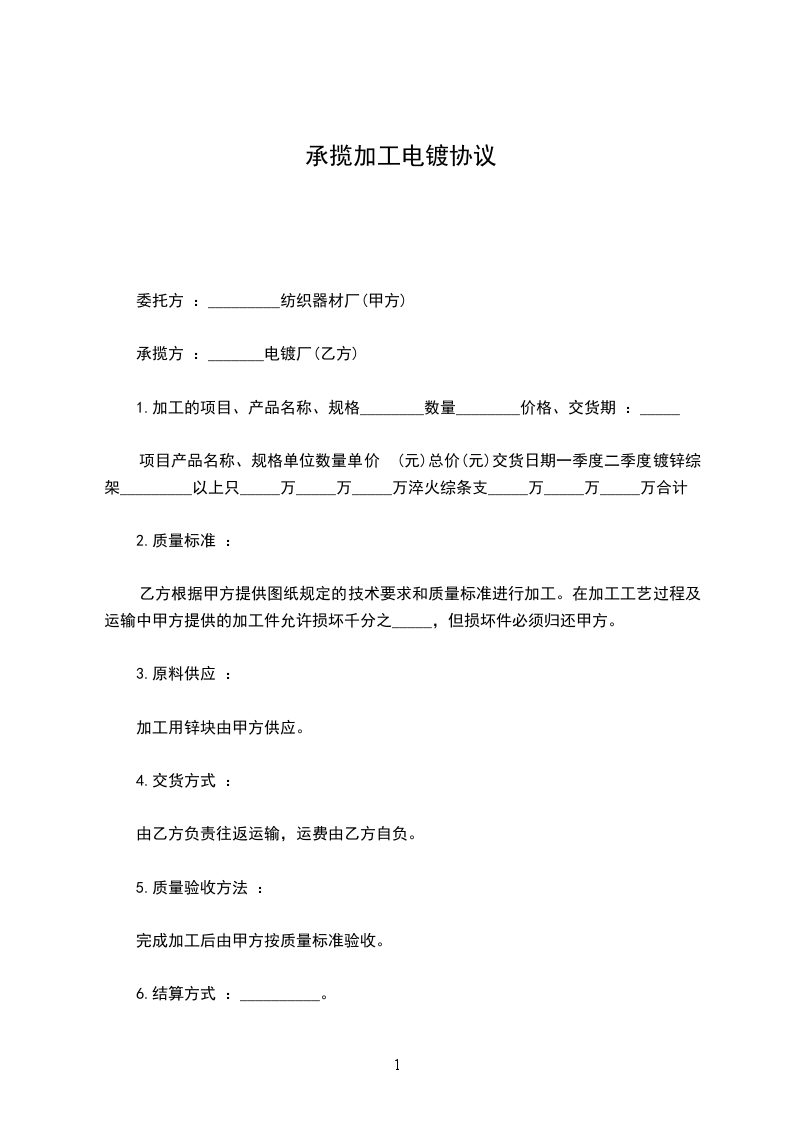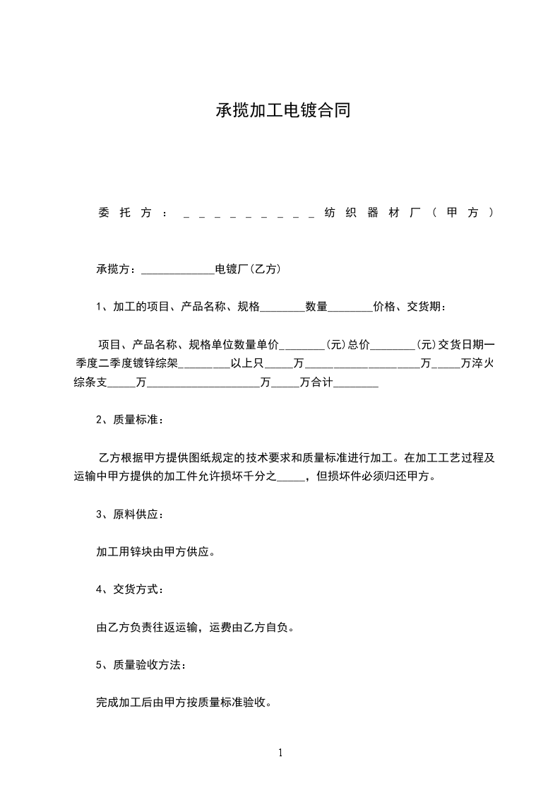 承揽方:_____________________电镀厂(乙方)