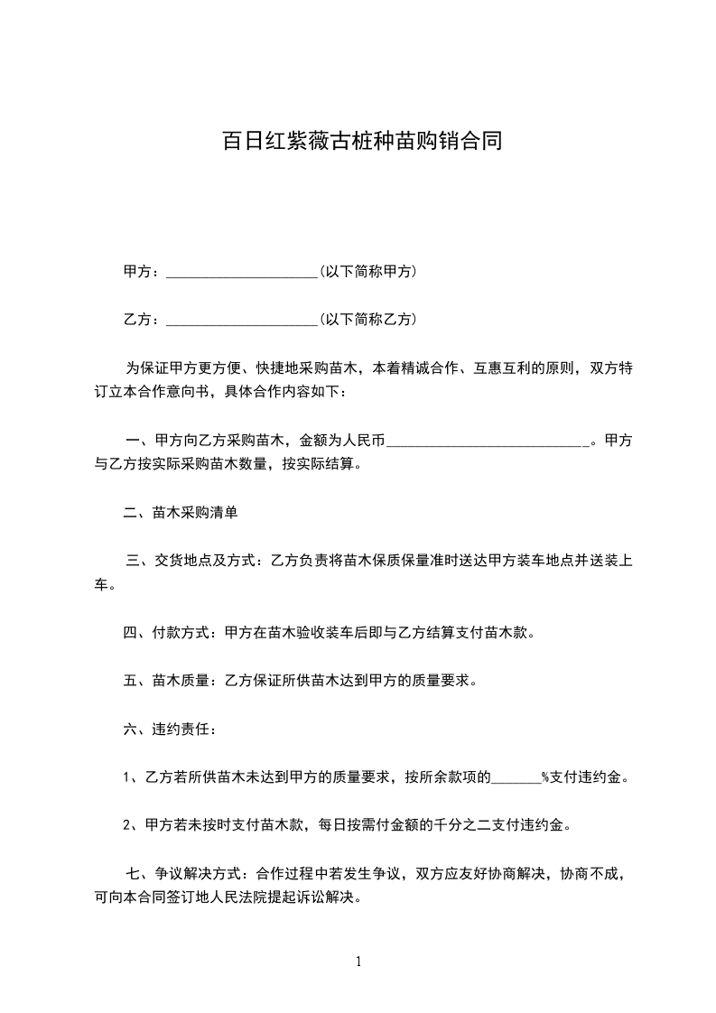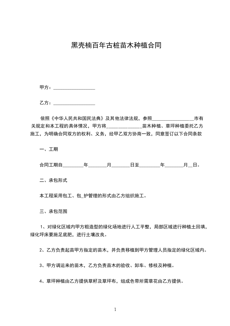 百日红古桩种苗种植承包合同怎么写