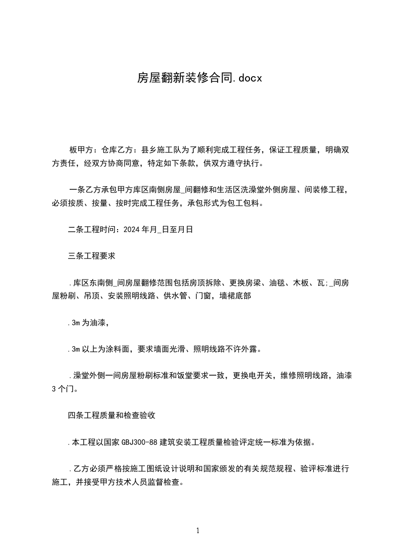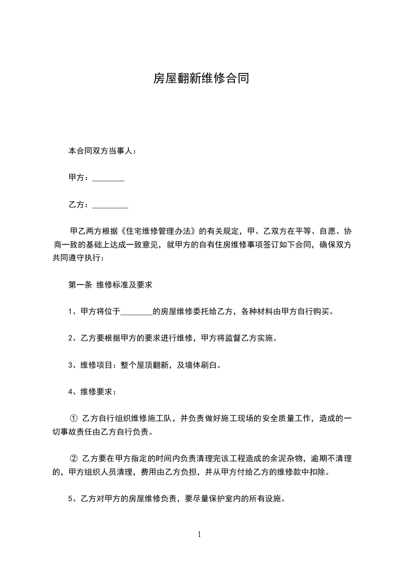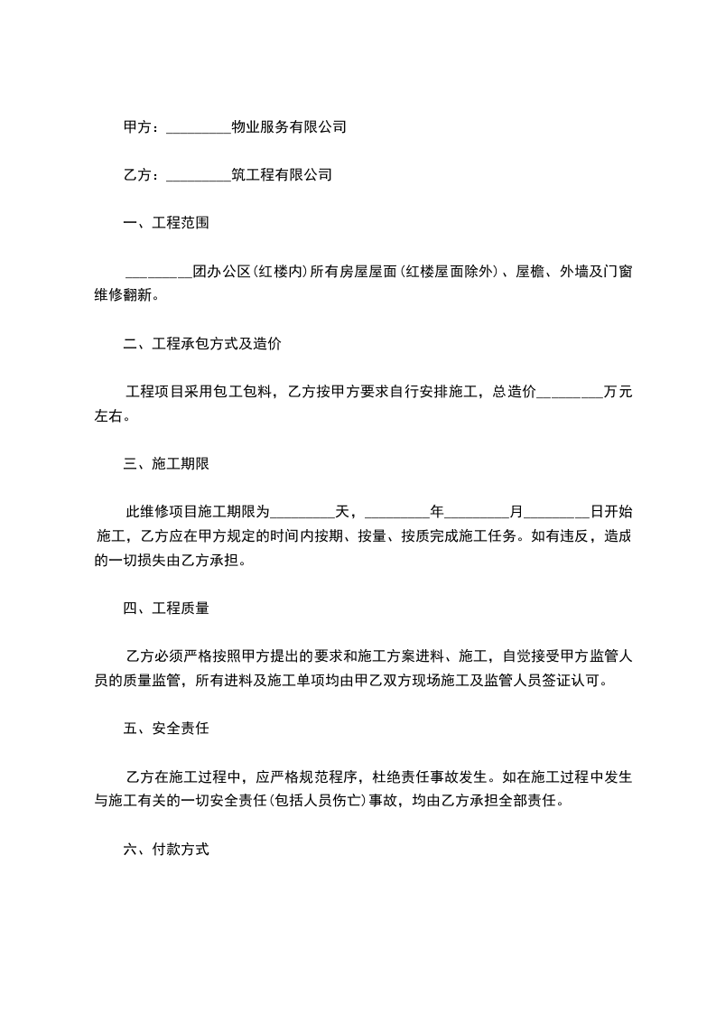此维修项目施工期限为_________天,_________年_________月_________日开始施工,乙方应在甲方规定的时间内按期、按量、按质完成施工任务。如有违反,造成的一切损失由乙方承担。