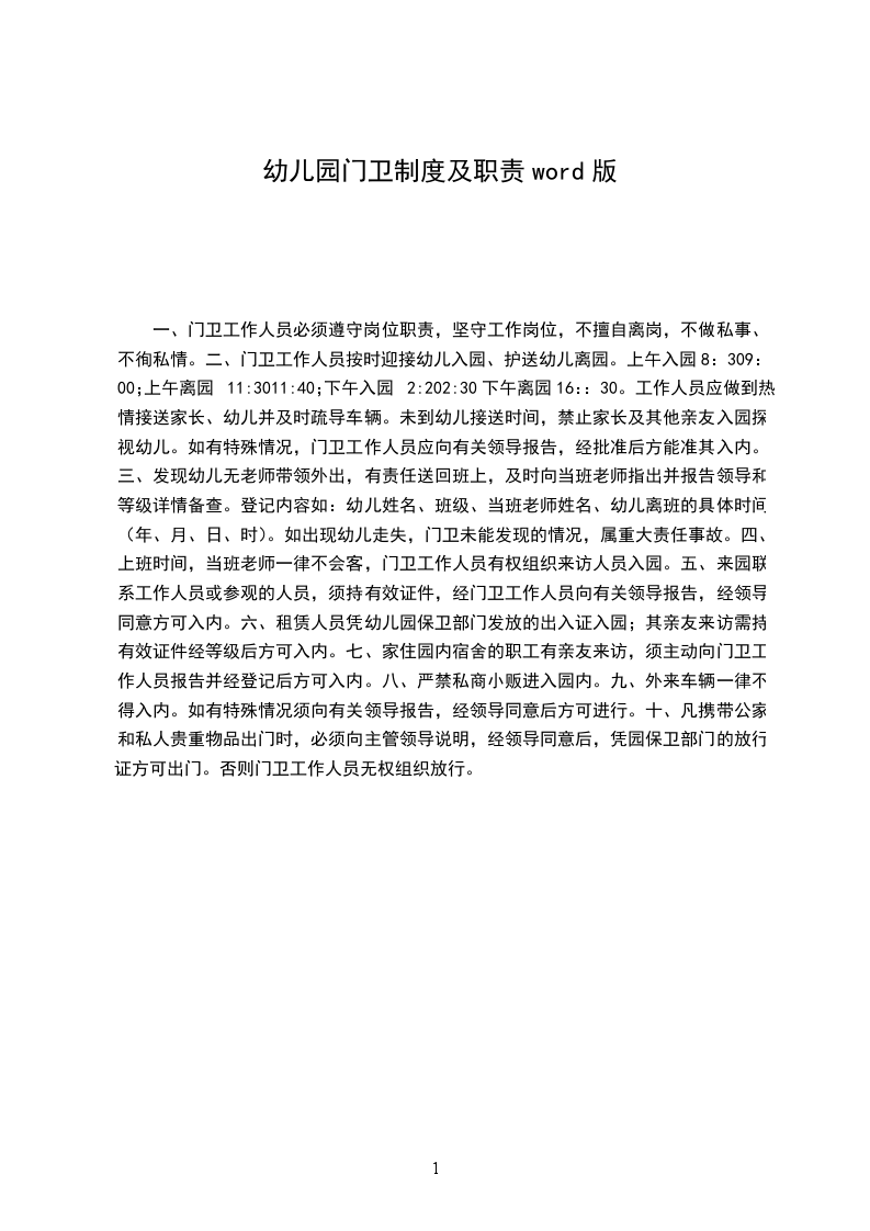 二、门卫工作人员按时迎接幼儿入园、护送幼儿离园。上午入园8:309:00;上午离园11:302:30下午离园16:2024:30。工作人员应做到热情接送家长、幼儿并及时疏导车辆。未到幼儿接送时间,禁止家长及其他亲友入园探视幼儿。如有特殊情况,门卫工作人员应向有关领导报告,经批准后方能准其入内。