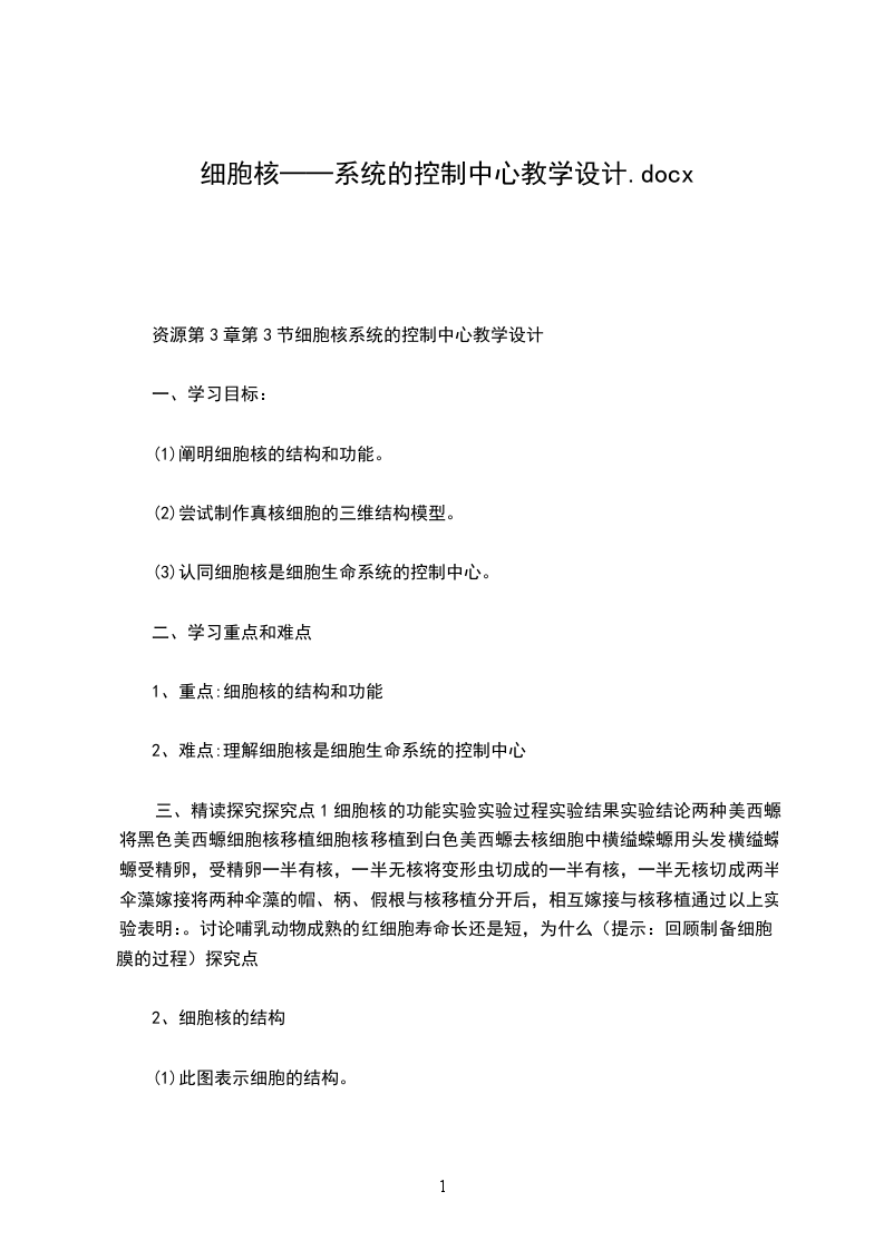 1、重点:细胞核的结构和功能