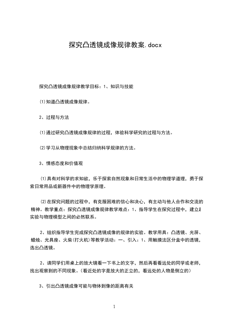 (2)在探究问题的过程中,有克服困难的信心和决心,有主动与他人合作和交流的精神。教学重点:探究凸透镜成像规律教学难点:1、指导学生在探究过程中,建立起实验与物理模型之间的必然联系。