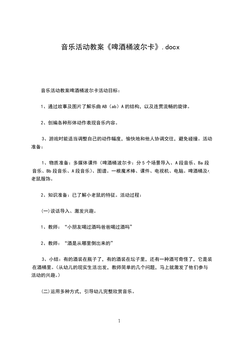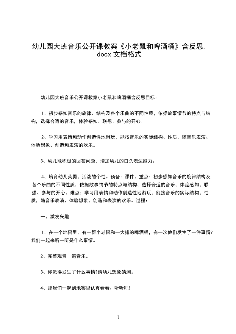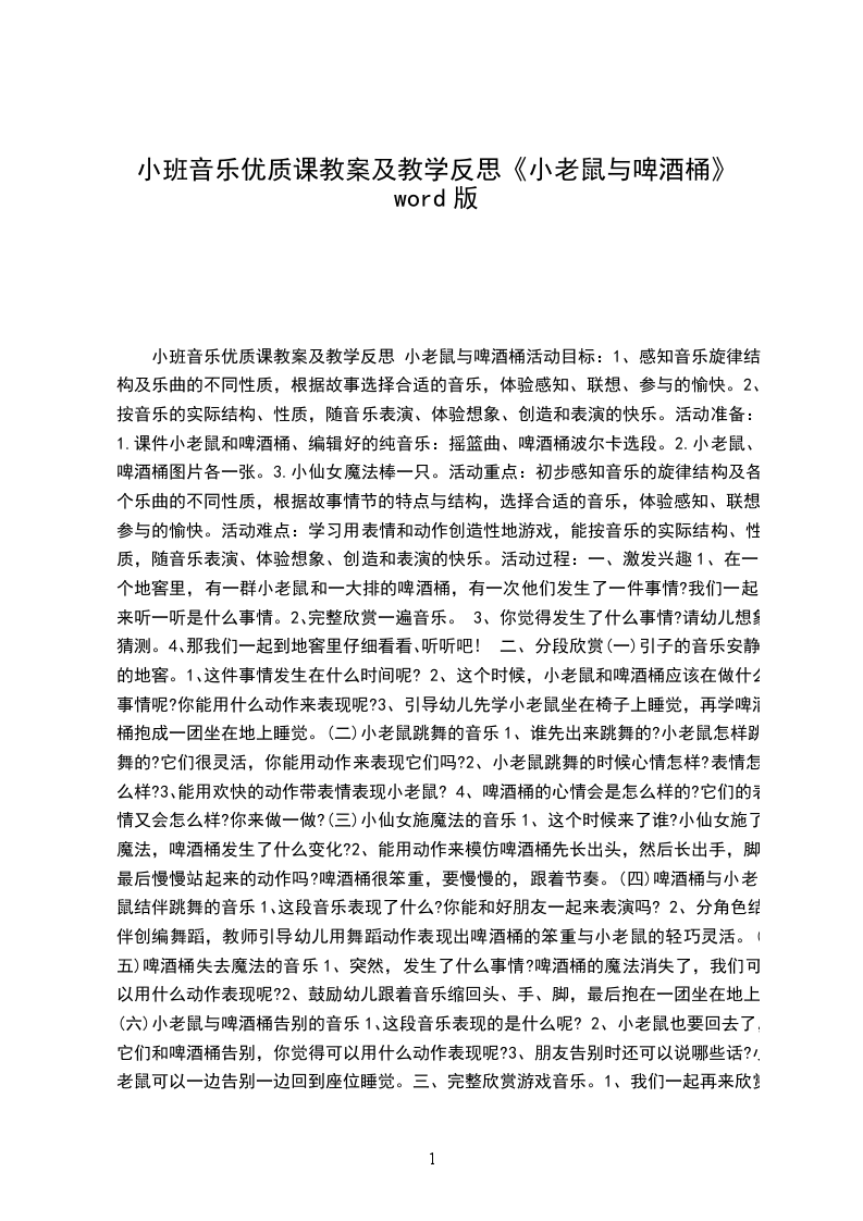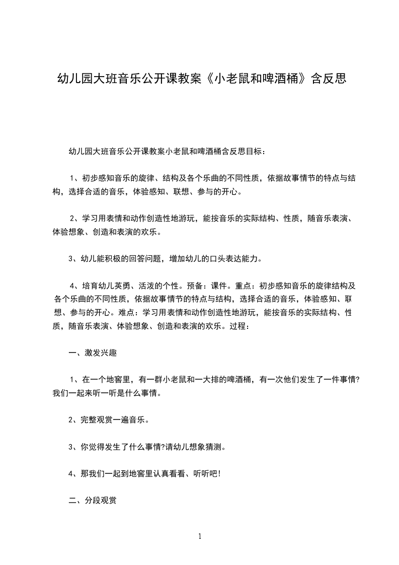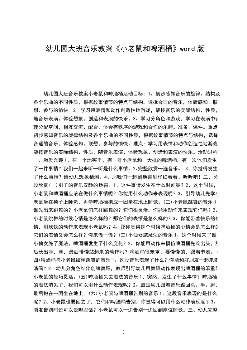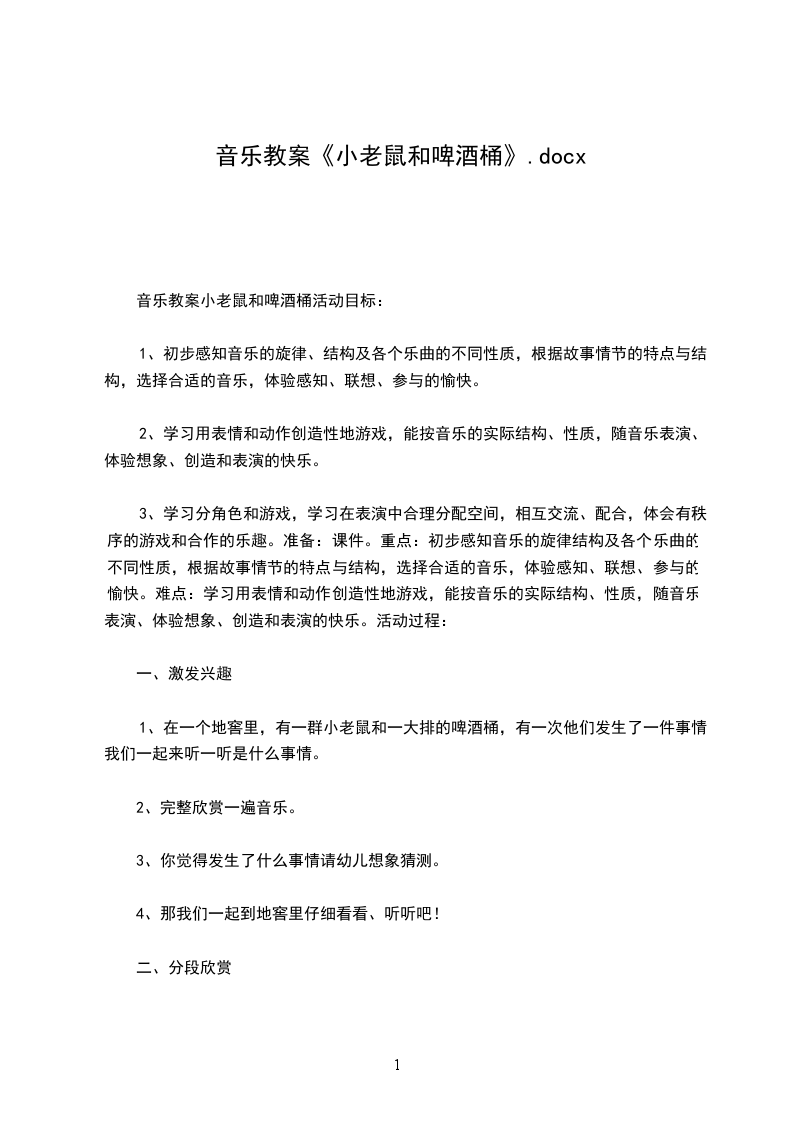 音乐教案小老鼠和啤酒桶活动目标: