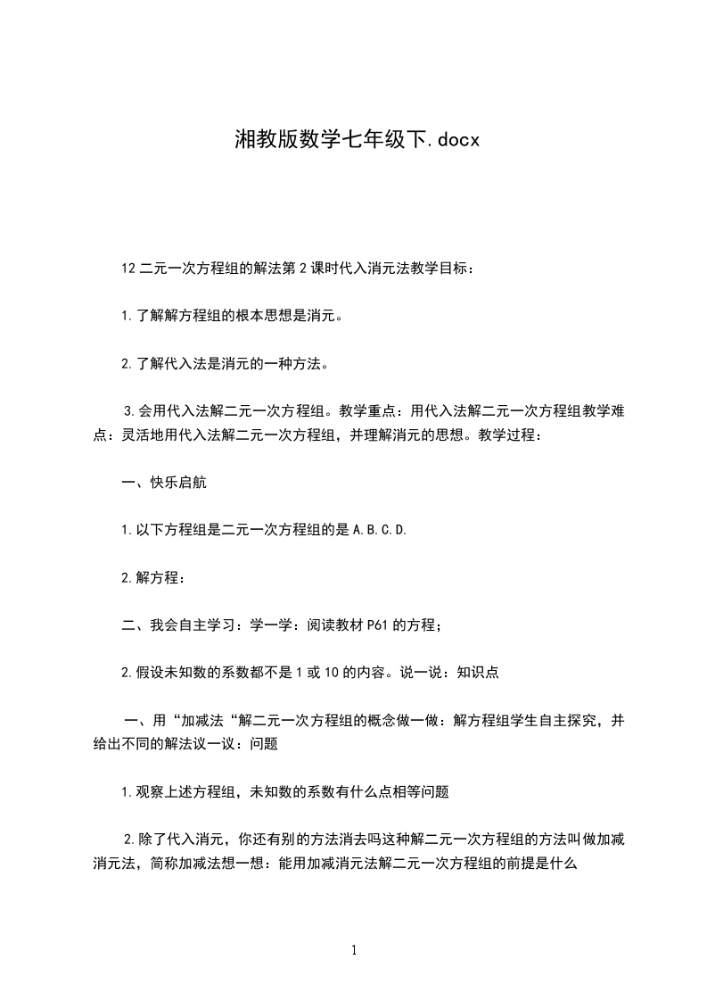 1、进一步经历用方程组解决实际问题的过程,体会方程组是刻画现实世界的有效数学模型;