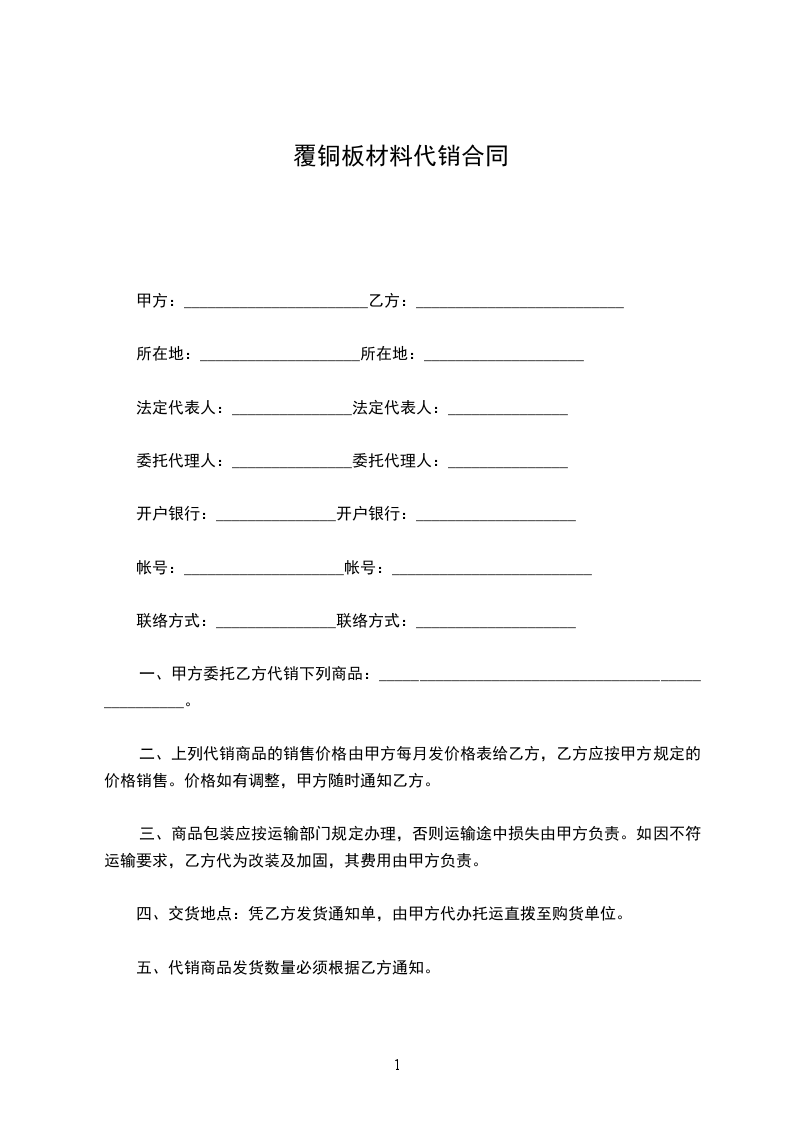 覆铜板材料代销合同