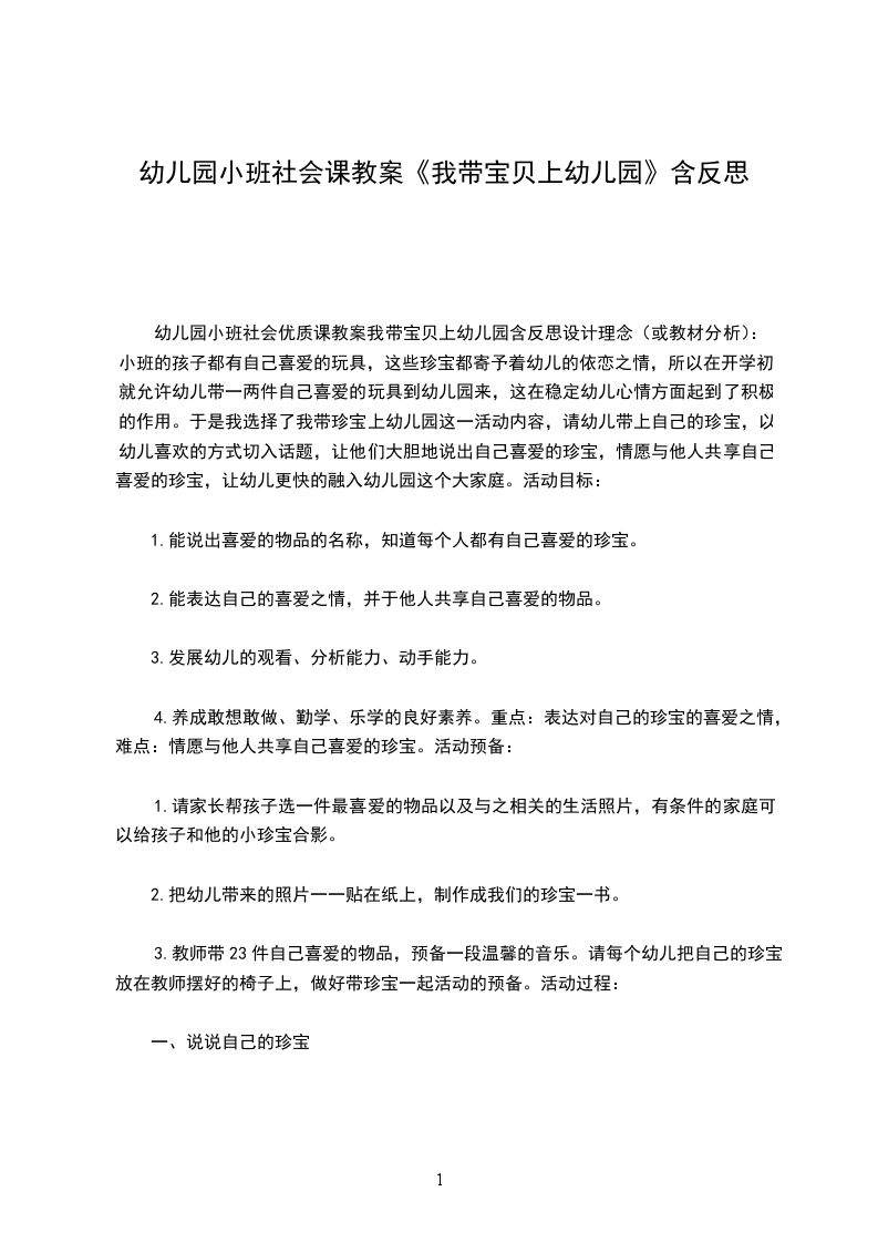 1.能说出自己喜爱的物品的名称,知道每个人都有自己喜爱的宝贝。