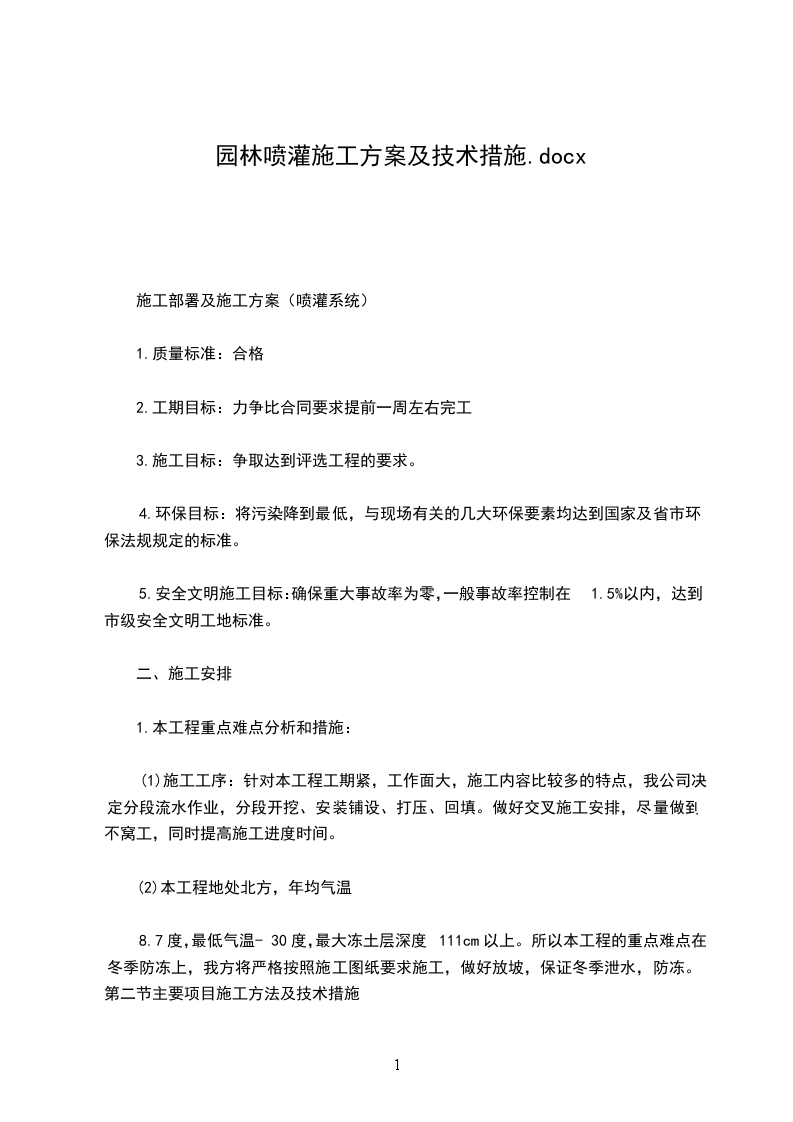 8.7度,最低气温-30度,最大冻土层深度111cm以上。所以本工程的重点难点在冬季防冻上,我方将严格按照施工图纸要求施工,做好放坡,保证冬季泄水,防冻。第二节主要项目施工方法及技术措施