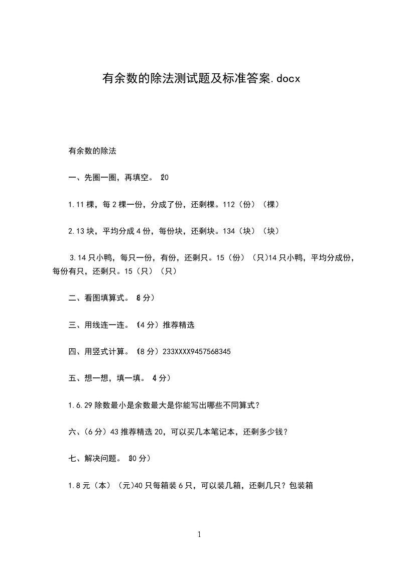 3.14只小鸭,每只一份,有份,还剩只。15(份)(只)14只小鸭,平均分成份,每份有只,还剩只。15(只)(只)