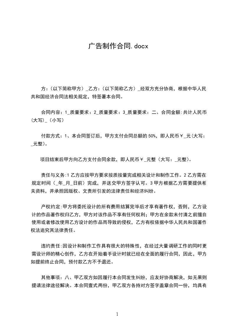 方:(以下简称甲方)_乙方:(以下简称乙方)_经双方充分协商,根据中华人民共和国经济合同法相关规定,特签署本合同。