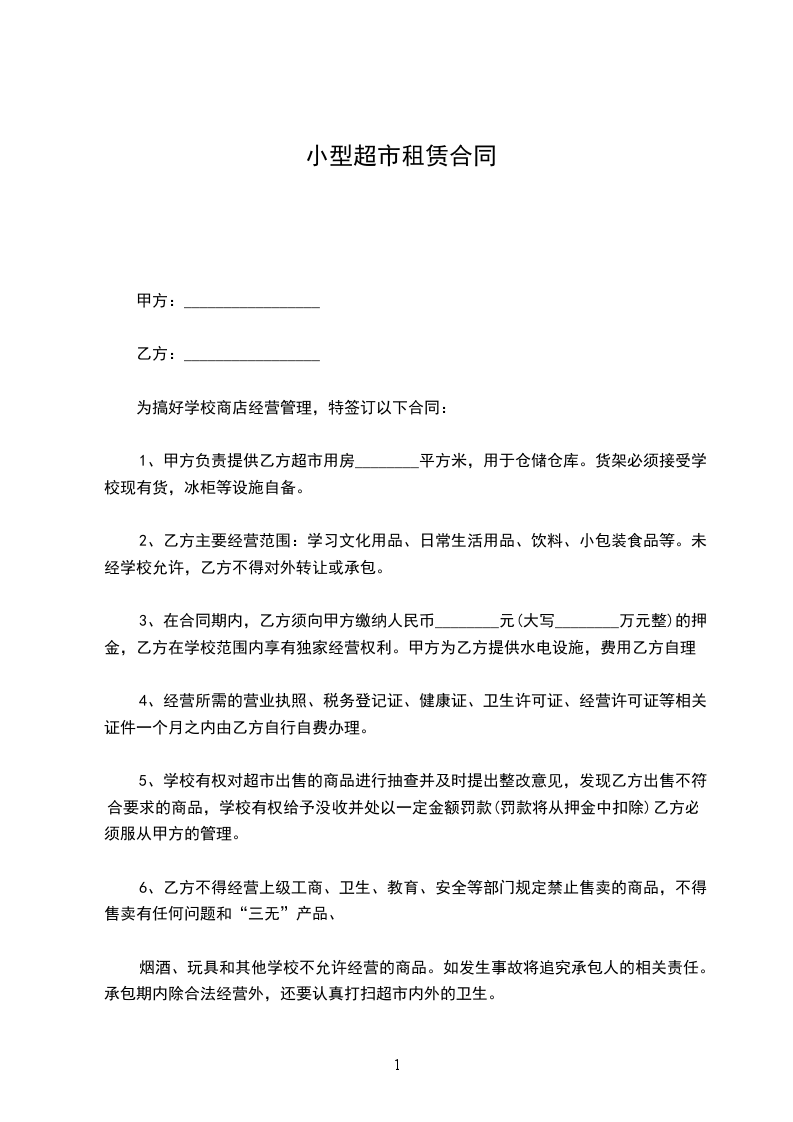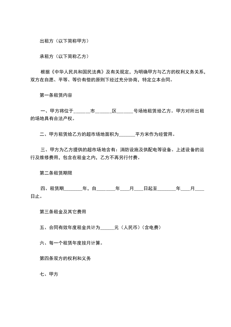 二、甲方租赁给乙方的超市场地面积为_______平方米作为经营用。