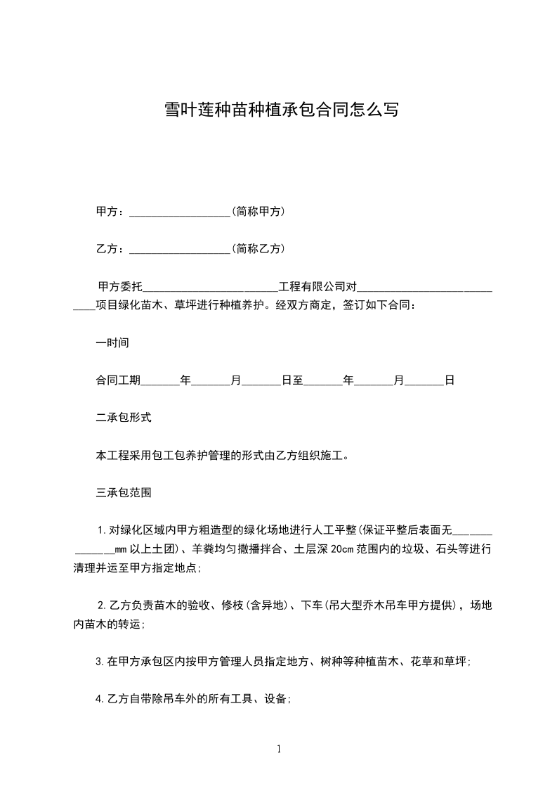雪叶莲种苗种植承包合同怎么写