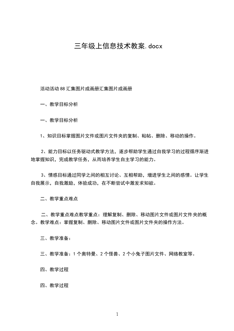 三、教学准备:1个奥特曼、2个怪兽、2个小兔子图片文件、网络教室等。