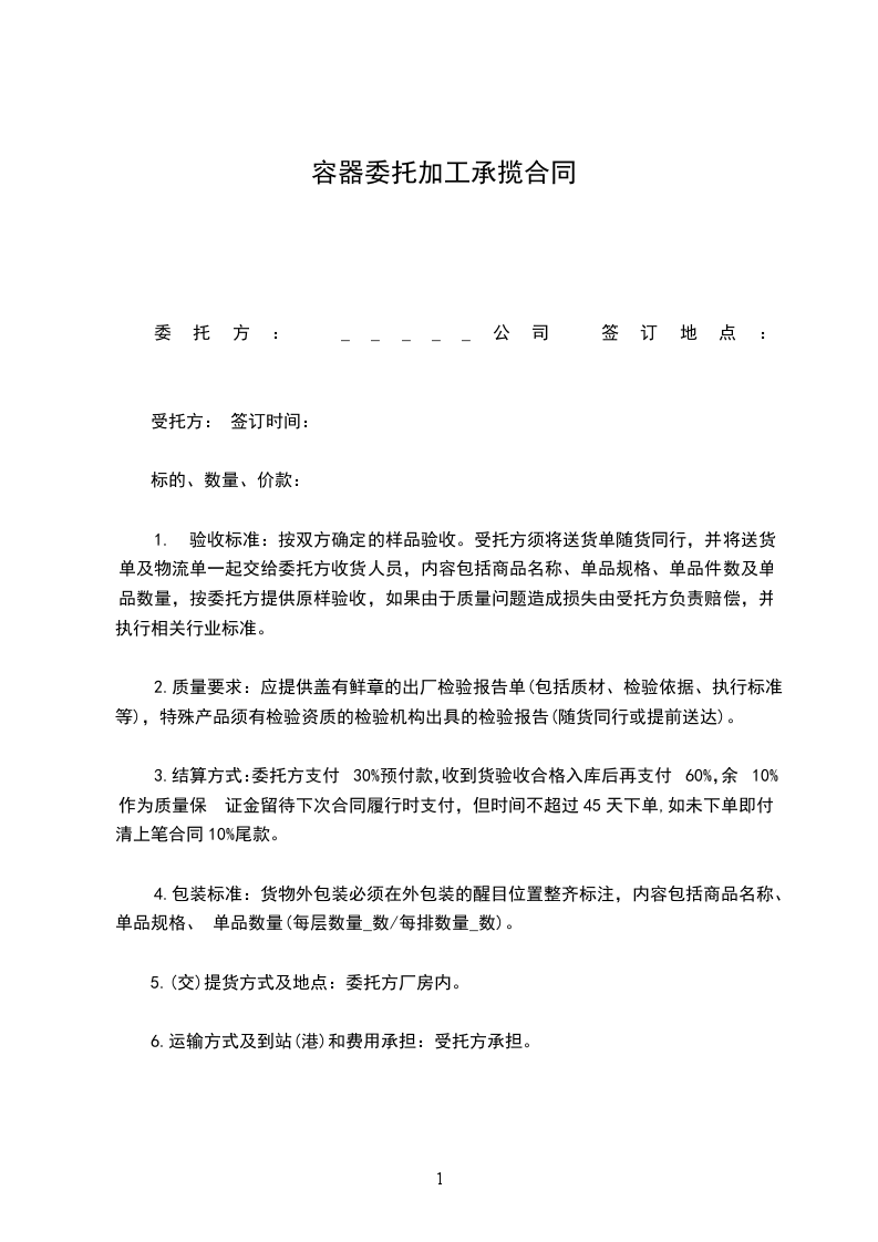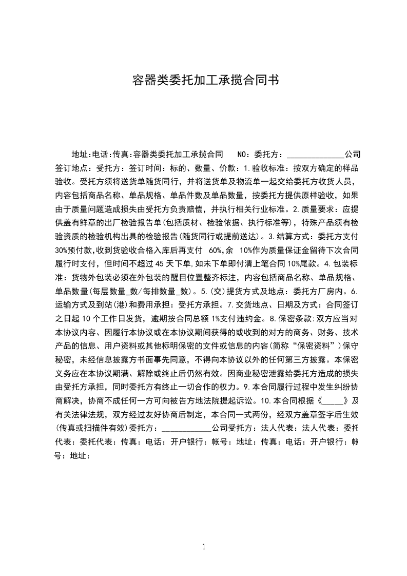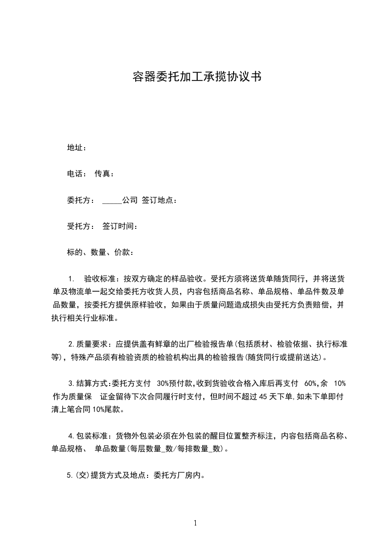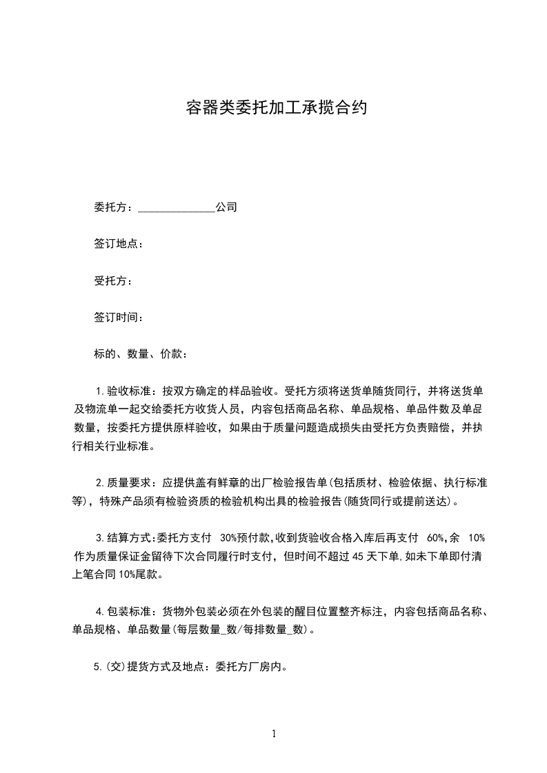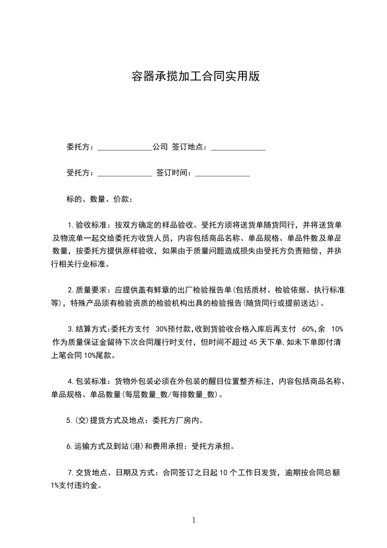 容器承揽加工合同实用版