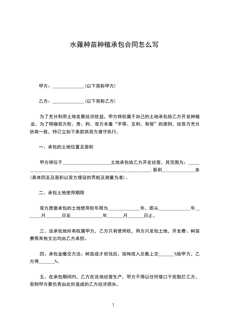 为了充分利用土地发展经济效益,甲方将权属于自己的土地承包给乙方开发种植业,为了明确双方权、责、利、双方本着“平等、互利、有偿”的原则,经双方充分协商一致,特订立如下条款供双方遵守执行。