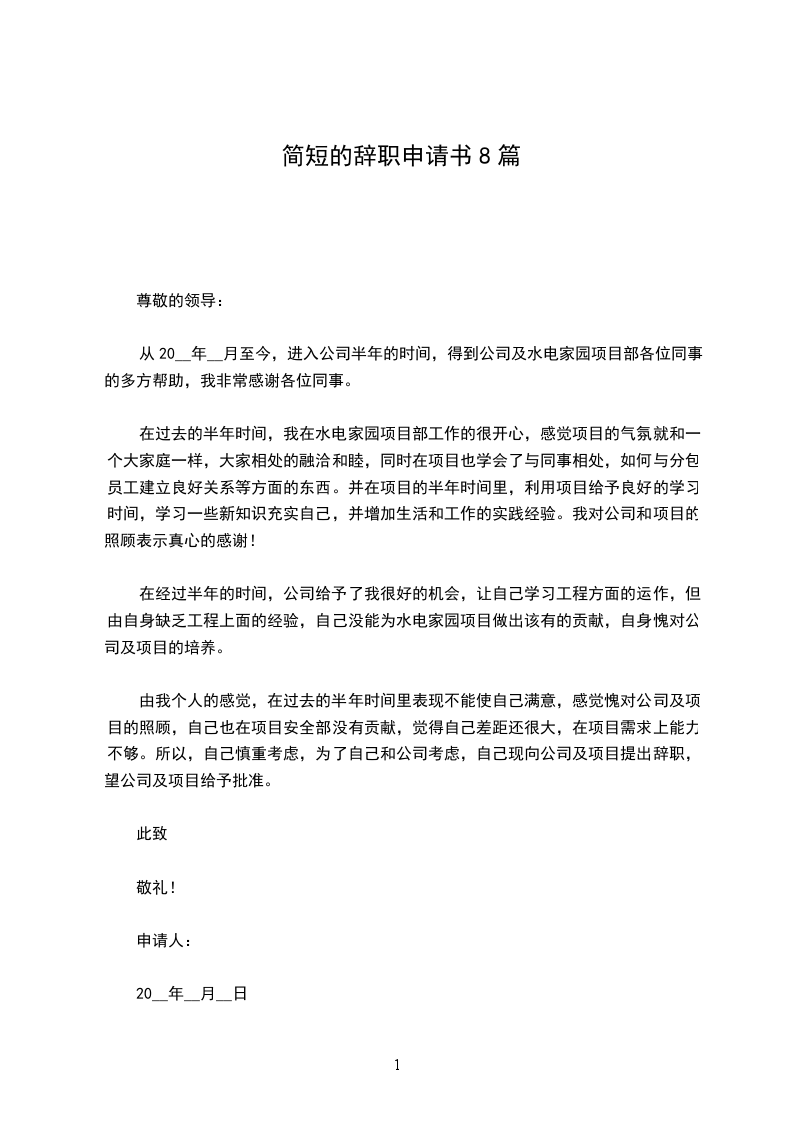 四)尊敬的总经理:经过对最近工作的总结,以及看到我自己给工厂造成的损失,深思熟虑之后我决定辞职。步入手袋行业2年多,我很感谢公司对我的栽培以及您对我期望。但是现在对于这个行业我已经产生了严重的抗拒心理,每天上班成了最恐怖的事情,工作成为了我最厌烦的事情,对于这个行业已经不在感兴趣,不想再去从事跟手袋沾边的任何工作,加上家里也因为我本身的年龄问题而在不停的给我施压,工作及生活带给我的双倍压力,压的我喘不过气。为了以后的自立考虑,我决定辞职回家继续深造自己本身的专业,虽然我没有足够的心细,但是我会慢慢去磨合我自己的性格,还望您能批准!万分感激!此致敬礼!申请人:申请时间:年_月_日