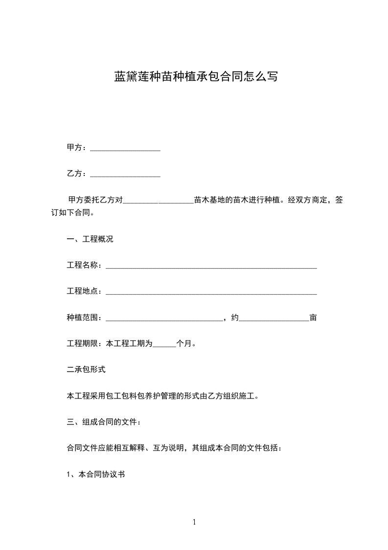 蓝黛莲种苗种植承包合同怎么写