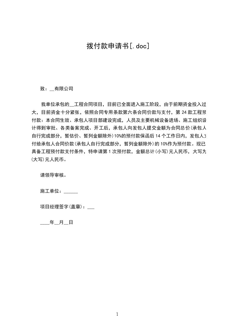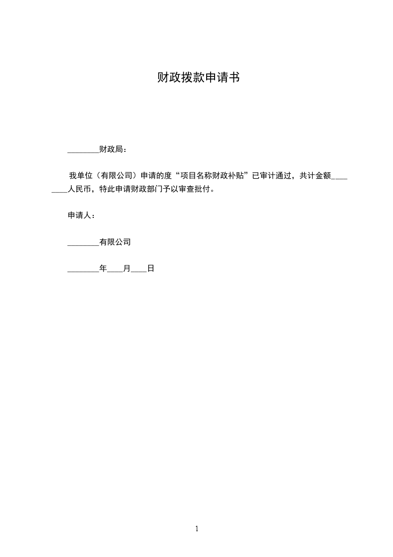 我单位(有限公司)申请的度“项目名称财政补贴”已审计通过,共计金额________人民币,特此申请财政部门予以审查批付。