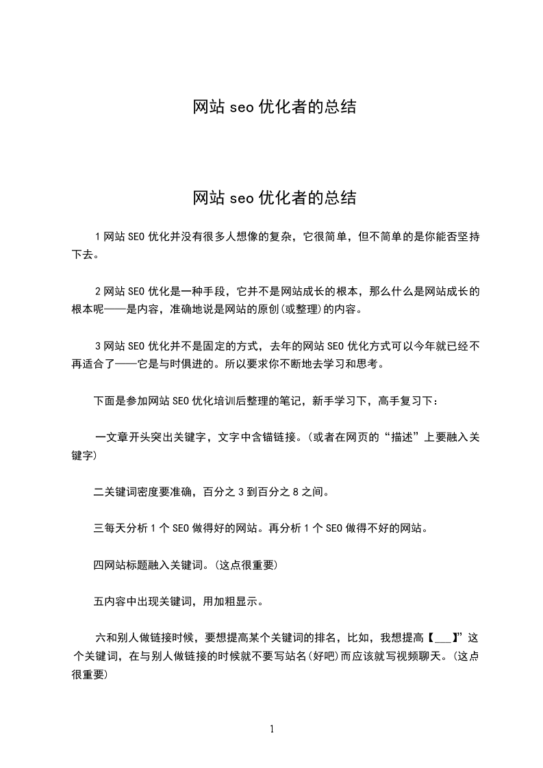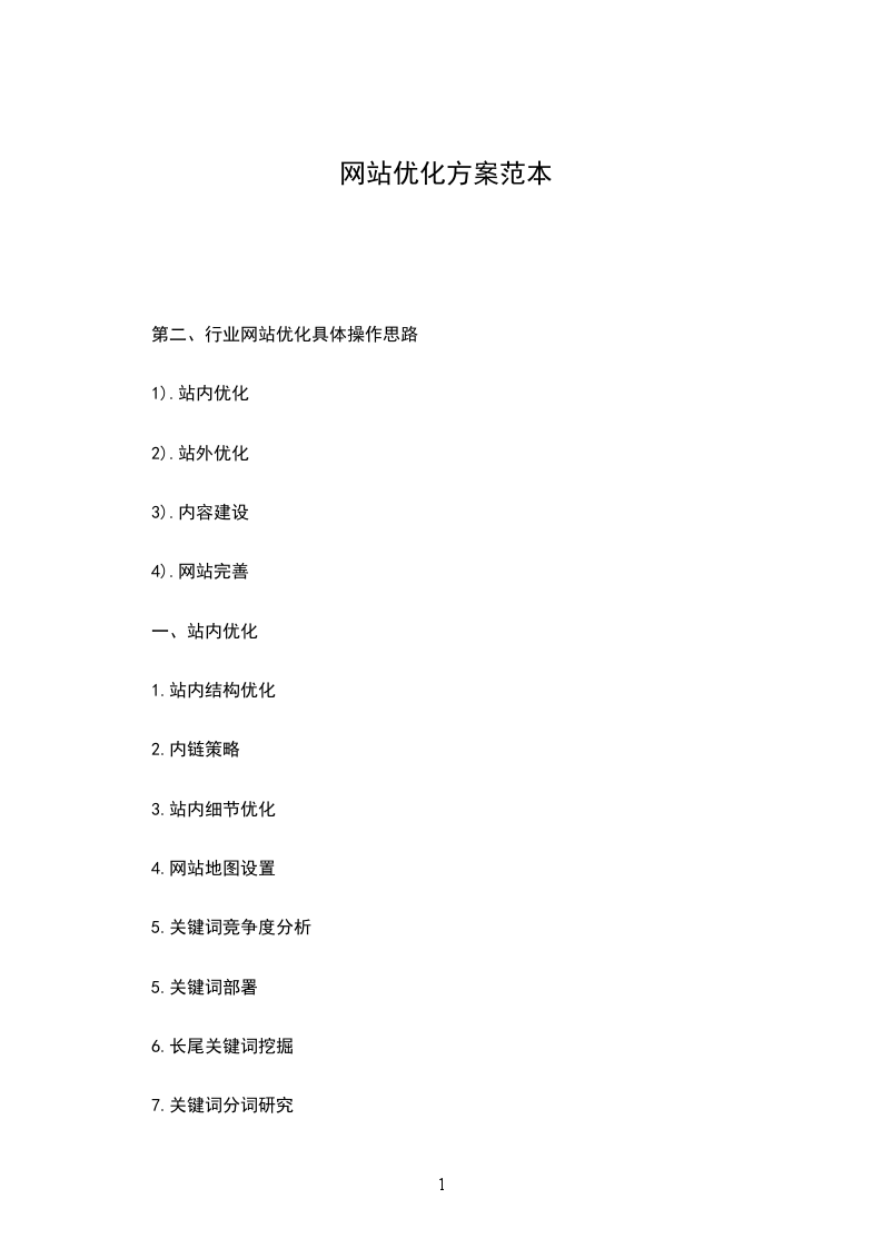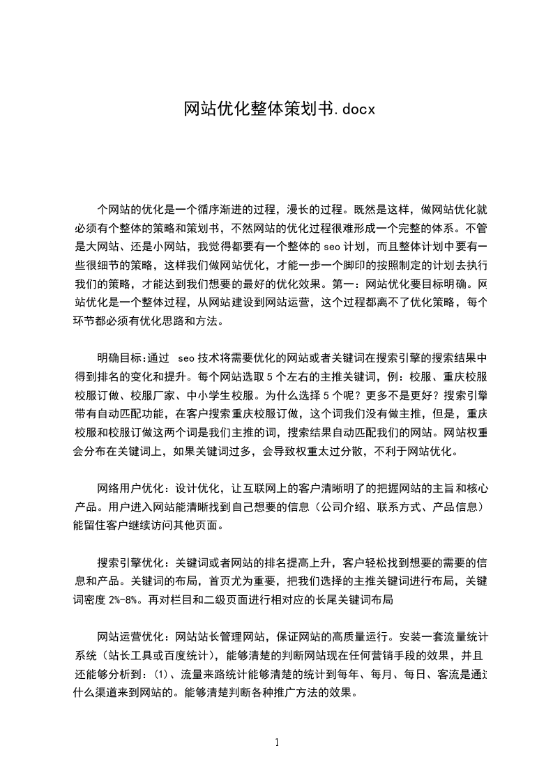 站内优化关键词部署挑选关键词的步骤:a、确定目标关键词b、目标关键词定义上的扩展c、模拟用户的思维设计关键词d、研究竞争者的关键词页面关键词优化先后顺序:最终页专题栏目频道首页页面关键词分配:a、最终页:长尾关键词b、专题页:热门关键词c、栏目页:固定关键词d、频道页:目标关键词e、首页:做两个顶级关键词,或者网站名称站内优化用户体验