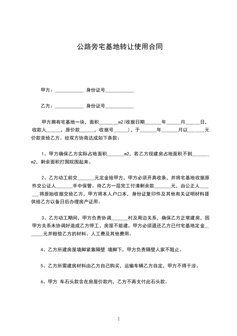 1、甲方保证该宅基地的使用权权属甲方使用,在转让使用前甲方保证没有将该宅基地使用权进行抵押,也不存在其他纠纷和债权、债务纠纷,如上述宅基地使用权转让交接后因甲方发生在转让前存在的债权、债务纠纷,甲方承担全部责任,按甲方违约处理。