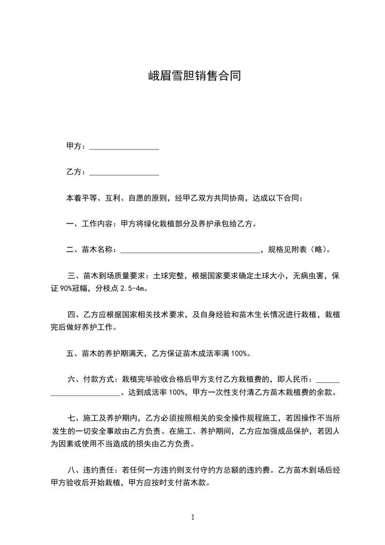 峨眉雪胆种苗种植承包合同怎么写