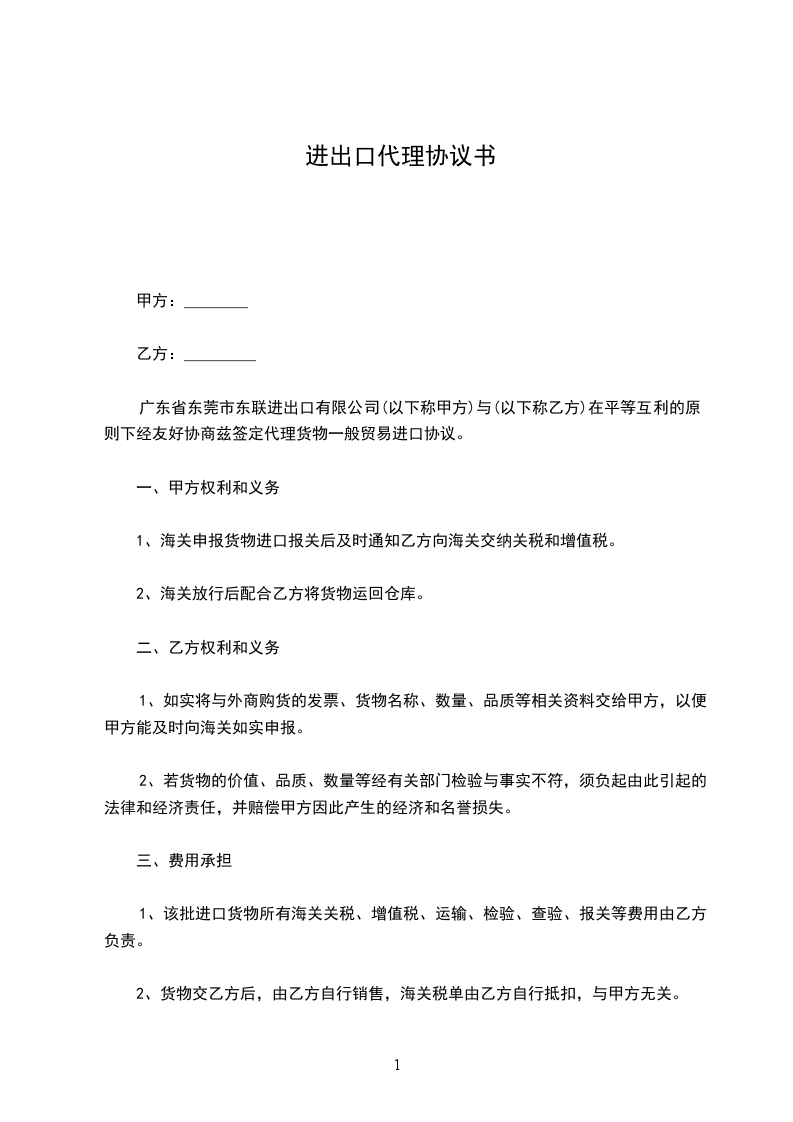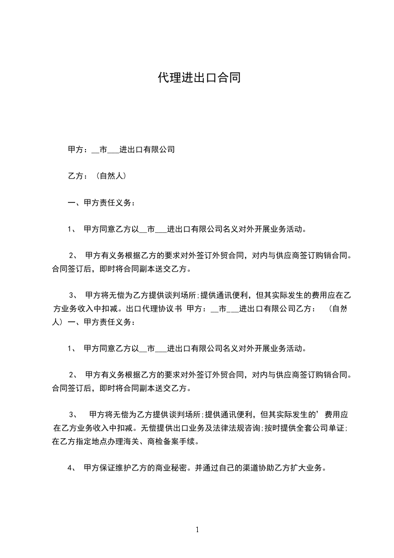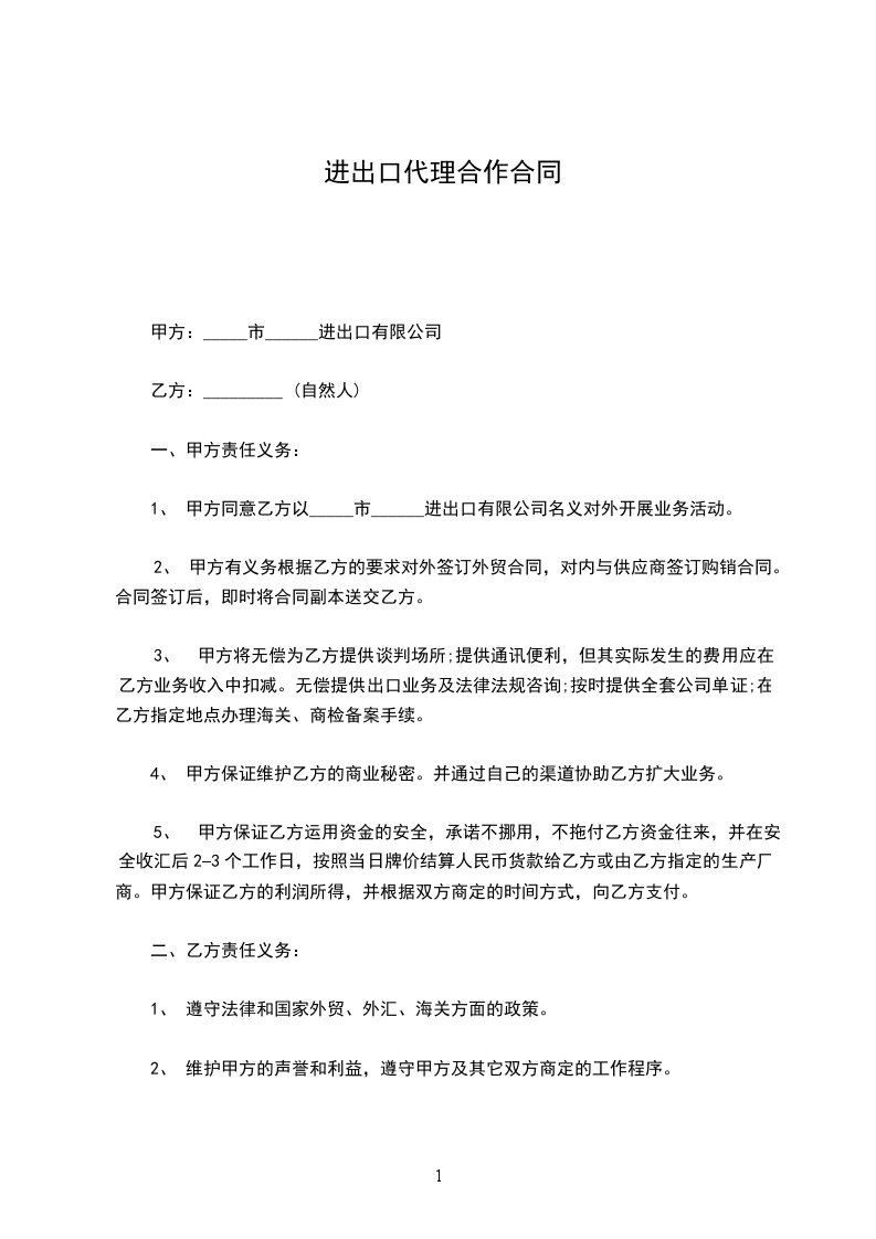 甲方责任义务:1、甲方同意乙方以_市_进出口有限公司名义对外开展业务活动。