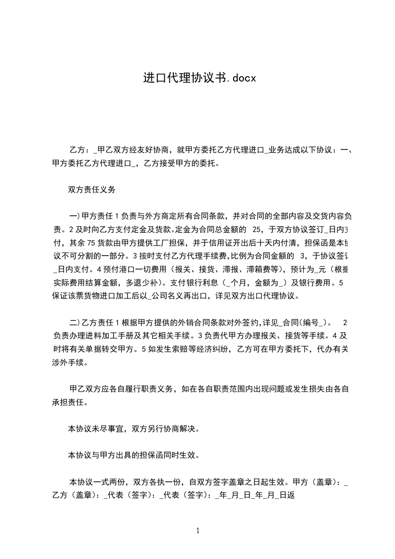 其它事项:本协议一式两份双方各执一份,具有同等的法律效力.该协议自双方签字盖章之日起生效,有效期壹年。备注:甲乙双方在执行过程中,若对本协议上述条款有不同的见解和异议,需经双方协商研究同意后方能够进行修改和补充。甲方:乙方:_市_进出口有限公司(签字)法人代表:身份证号:签订日期:年月日签订日期:年月日