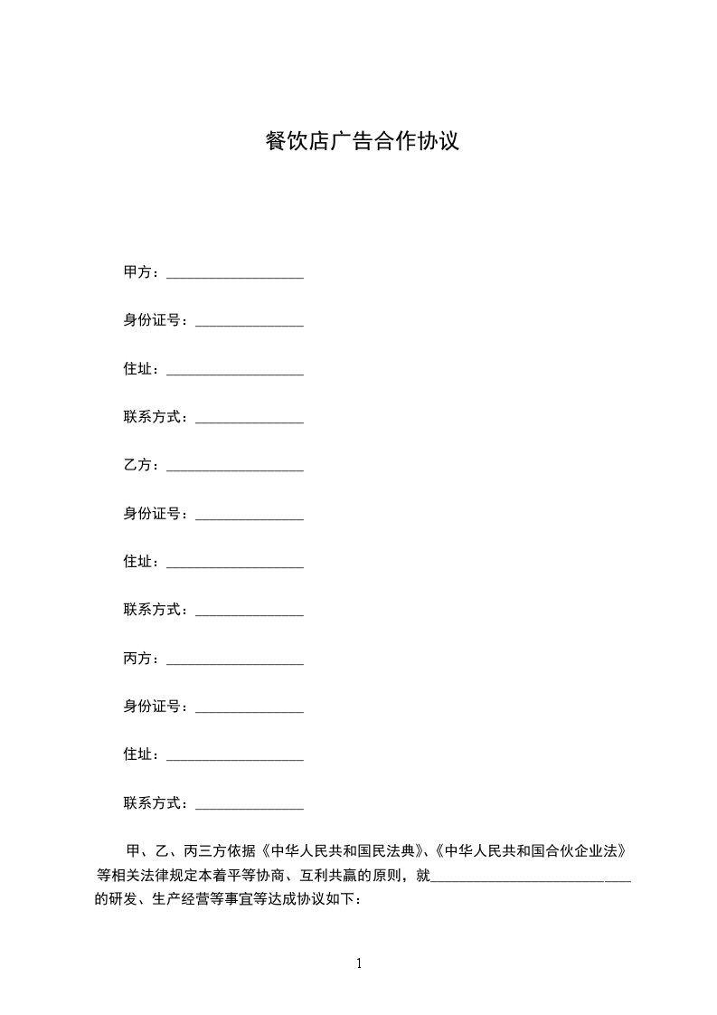 甲、乙、丙三方依据《中华人民共和国民法典》、《中华人民共和国合伙企业法》等相关法律规定本着平等协商、互利共赢的原则,就____________________________的研发、生产经营等事宜等达成协议如下: