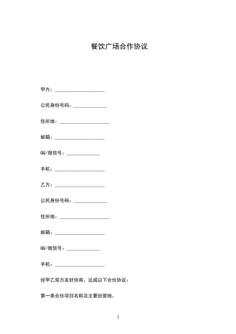 (一)合伙企业的名称:_______________。