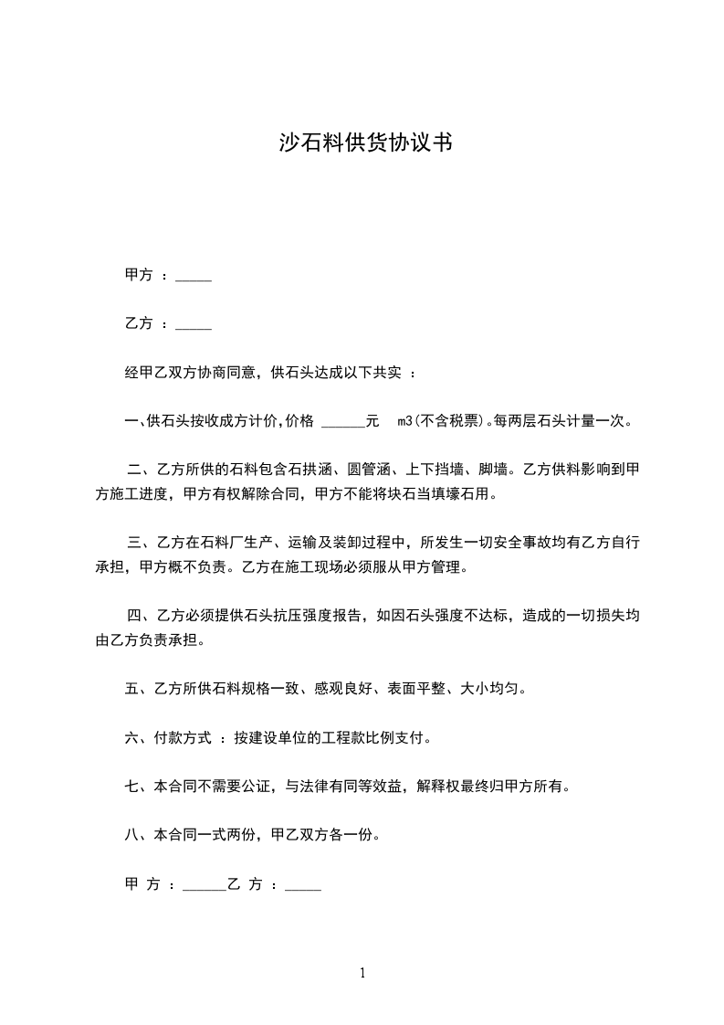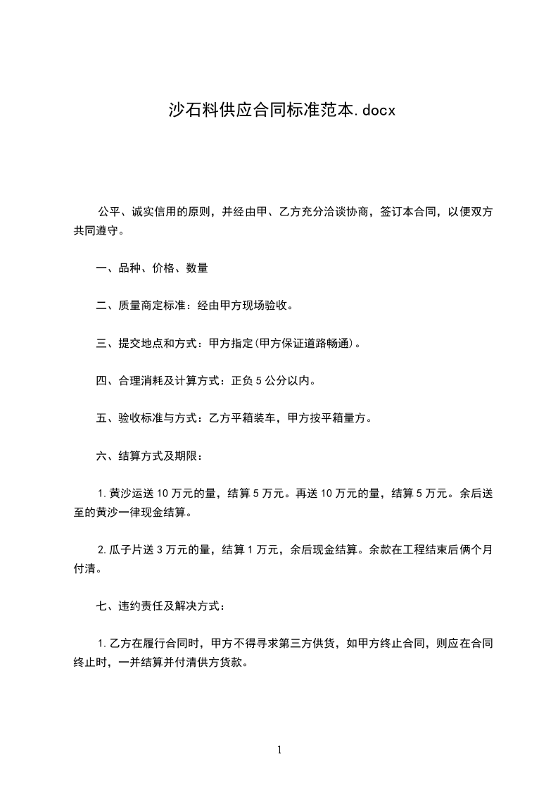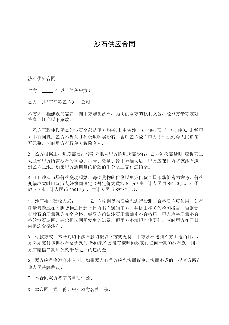 1.黄沙运送10万元的量,结算5万元。再送10万元的量,结算5万元。余后送至的黄沙一律现金结算。