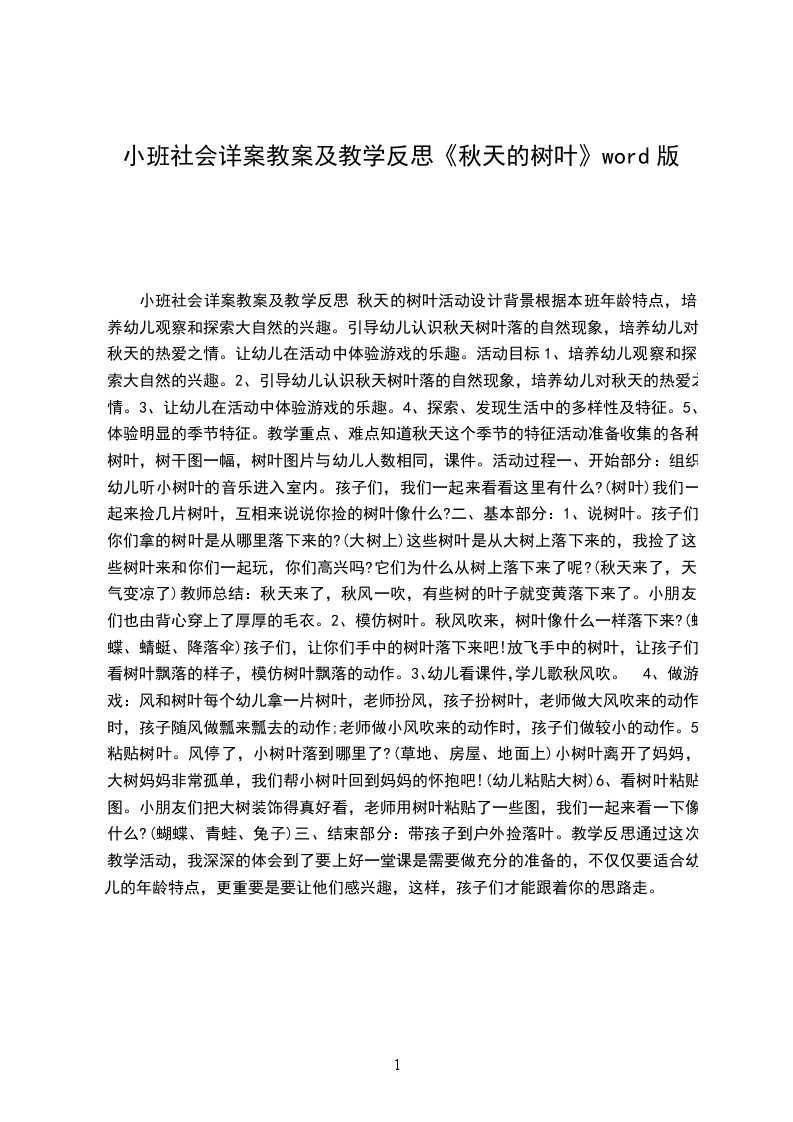 (1)教师和幼儿共同回忆:秋天的树和树叶给风吹了以后的情景:树会摇晃,叶子会飘落下来