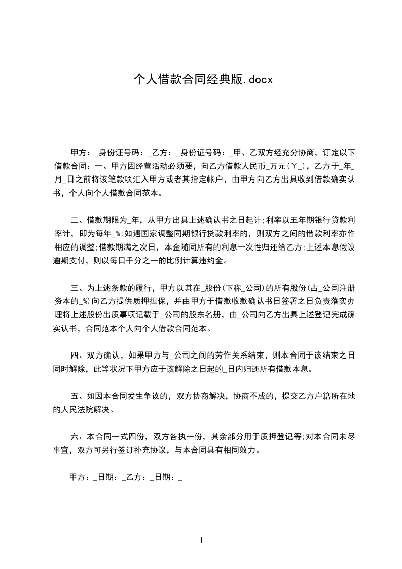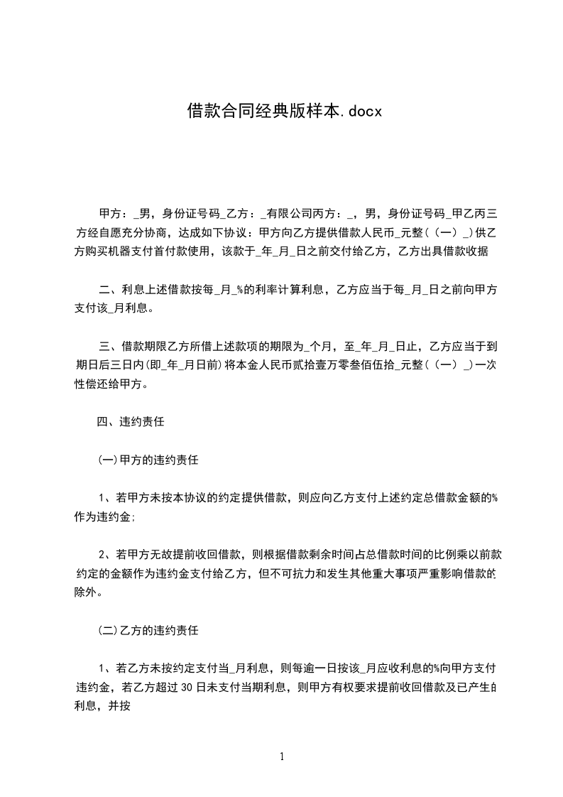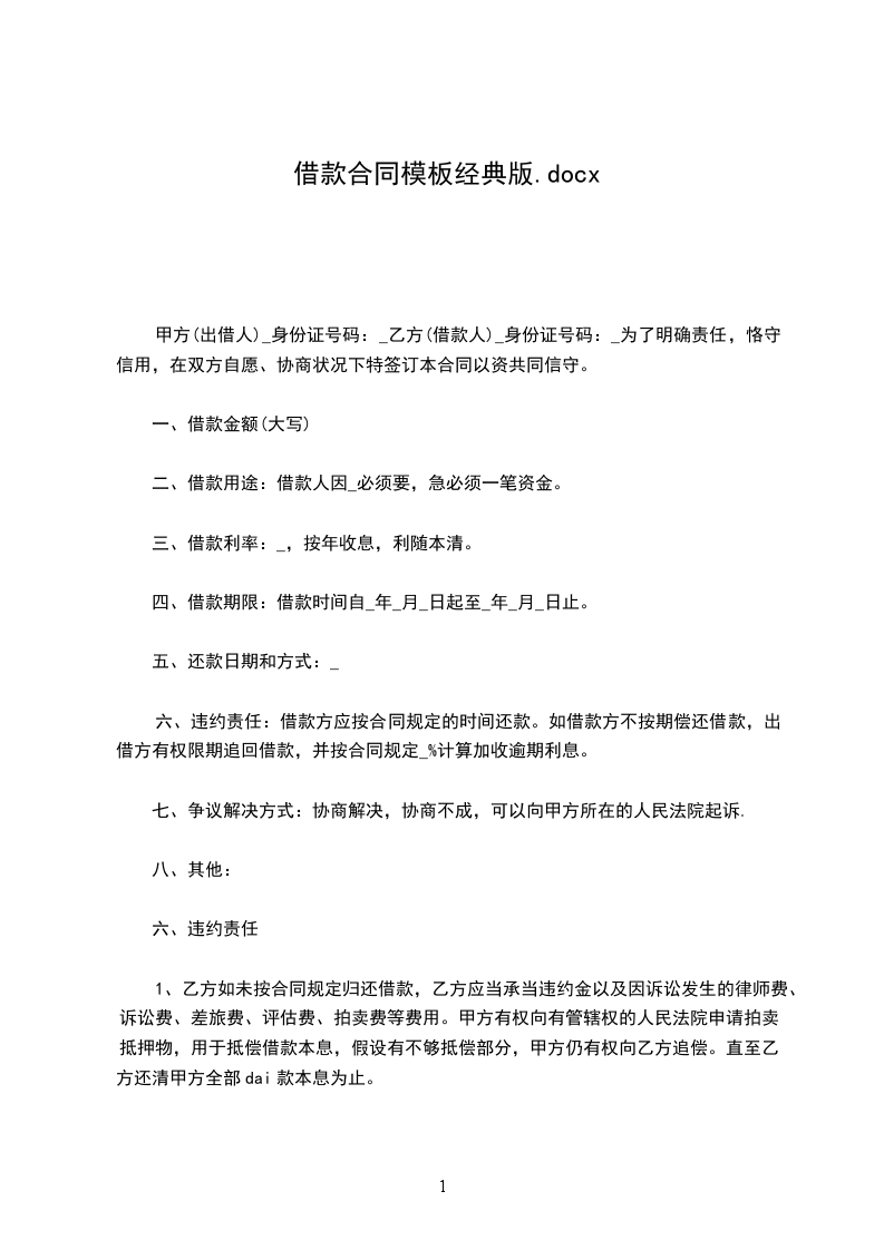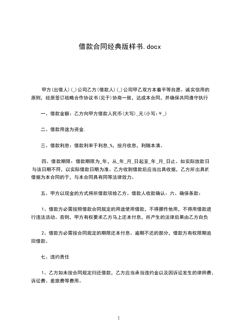甲方向乙方出借款共计人民币_元(大写),