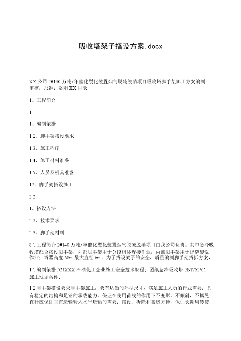 XX公司2#140万吨/年催化裂化装置烟气脱硫脱硝项目吸收塔脚手架施工方案编制:审核:批准:洛阳XX目录