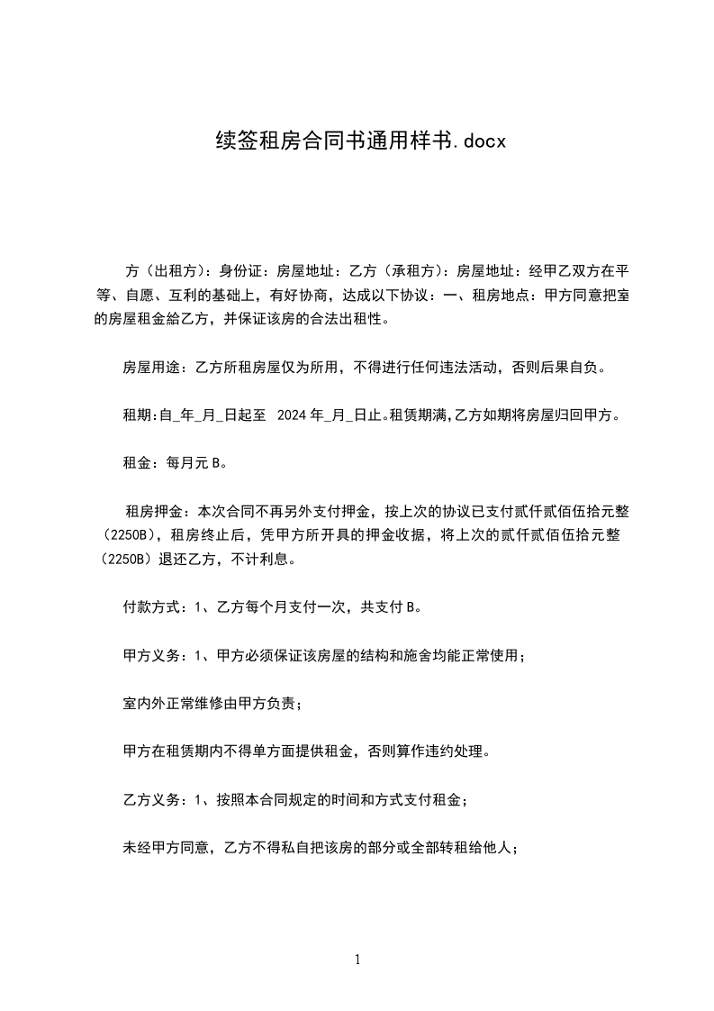 租期:自_年_月_日起至2024年_月_日止。租赁期满,乙方如期将房屋归回甲方。