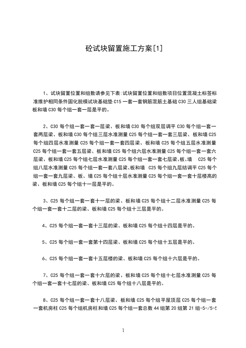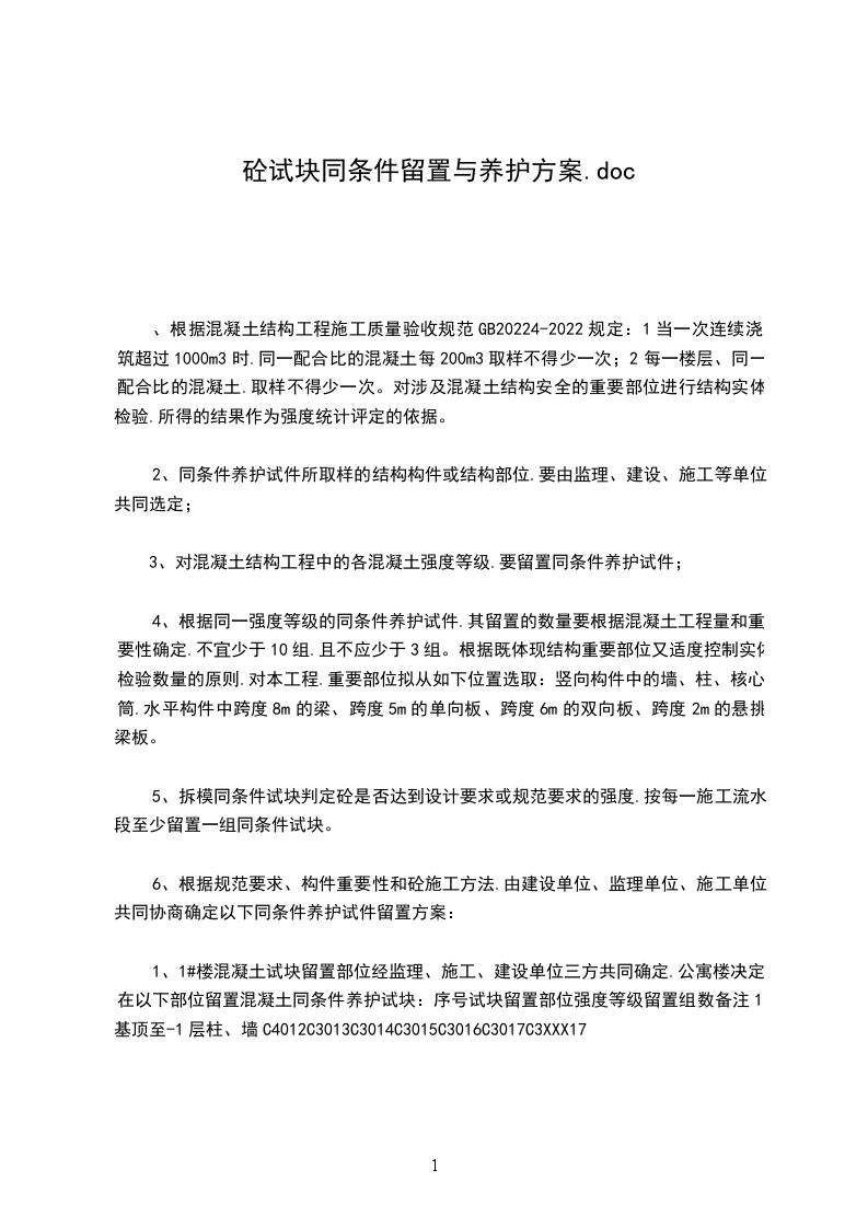 住宅小区(二标段)工程试块留置方案苏州XX公司住宅小区(二标段)项目部混凝土及砂浆试块留置方法序号检测类别取样数量检验批备注当一次连续浇筑混凝土超过1000m3时,同一配合比的混凝土每2031混凝土3块组取样不得少于一次;少标养试块于1000m3时,同一配合比的混凝土每100m3取样不得少于一次每250m3砌体为一检验2砂浆6块组批,每层砌体不少于一标养检验批,基础亦不少于试块一检验批同条件养护试件强度检测